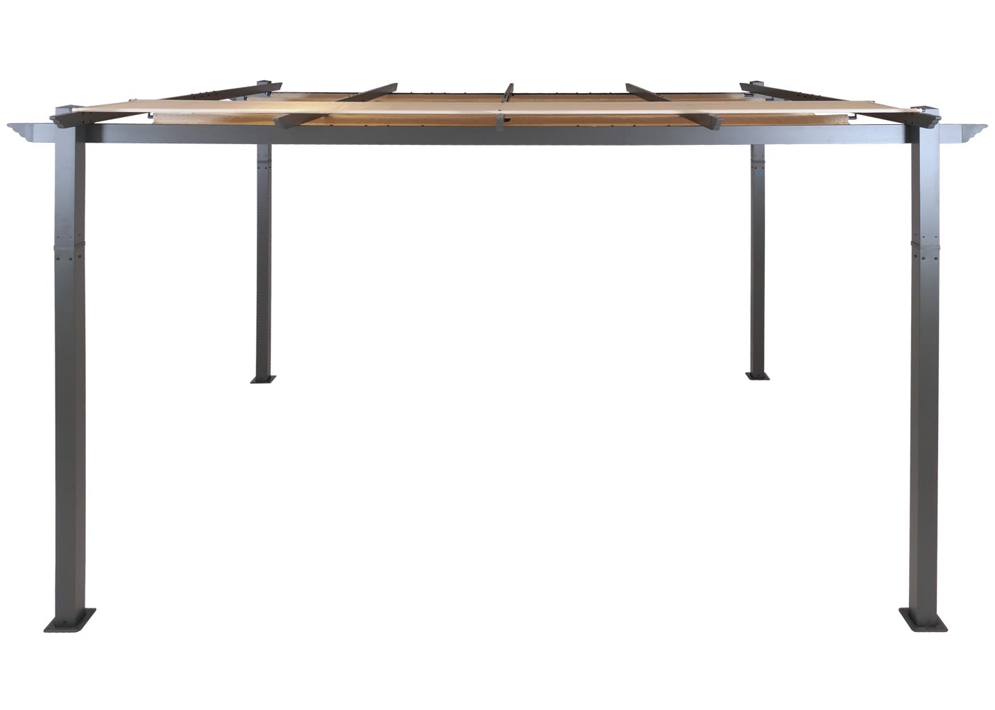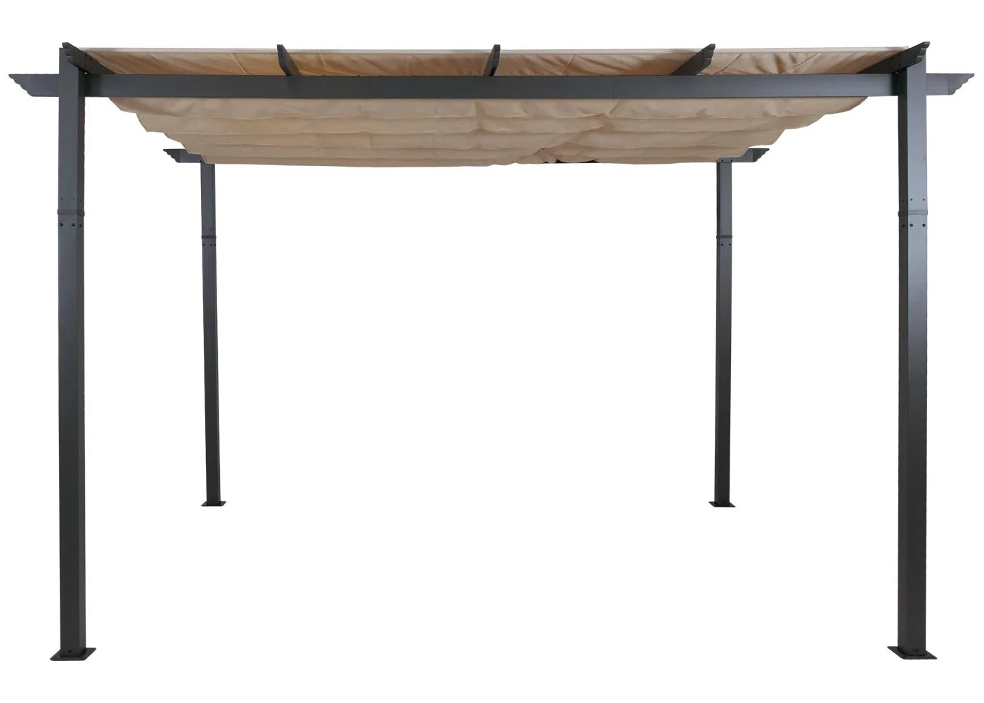 Des détails bien pensés comme la protection contre la pluie pour le toit replié et la poignée textile servant également à fixer le toit rendent cette pergola particulièrement pratique au quotidien. Le matériel de fixation inclus permet une installation stable aussi bien sur des surfaces dures que sur des sols plus souples. Pour préserver les propriétés imperméables du tissu, il est recommandé de ne pas laver la toile.