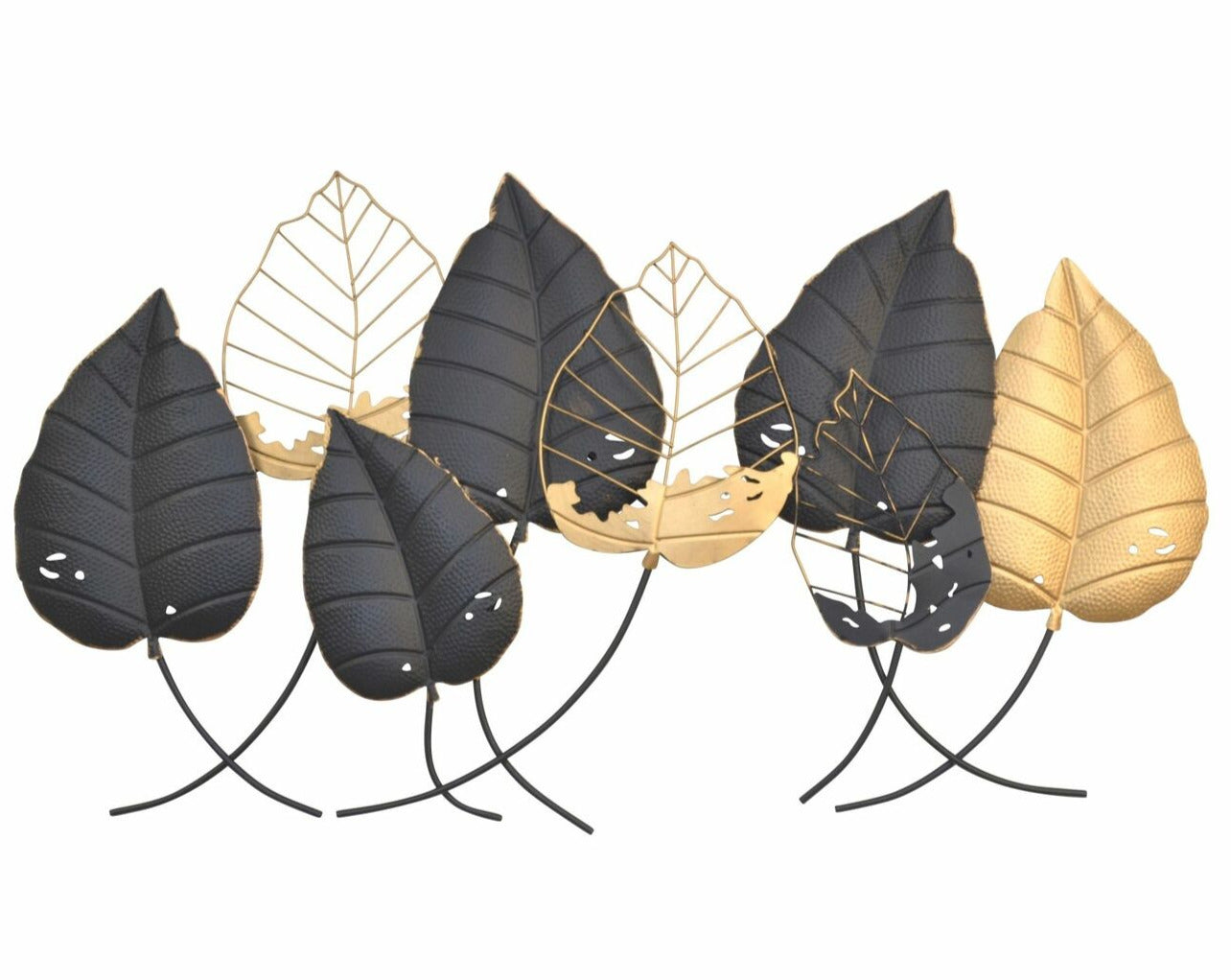 Décoration murale à suspendre feuilles en métal or noir 120x5x66cm DEC05060