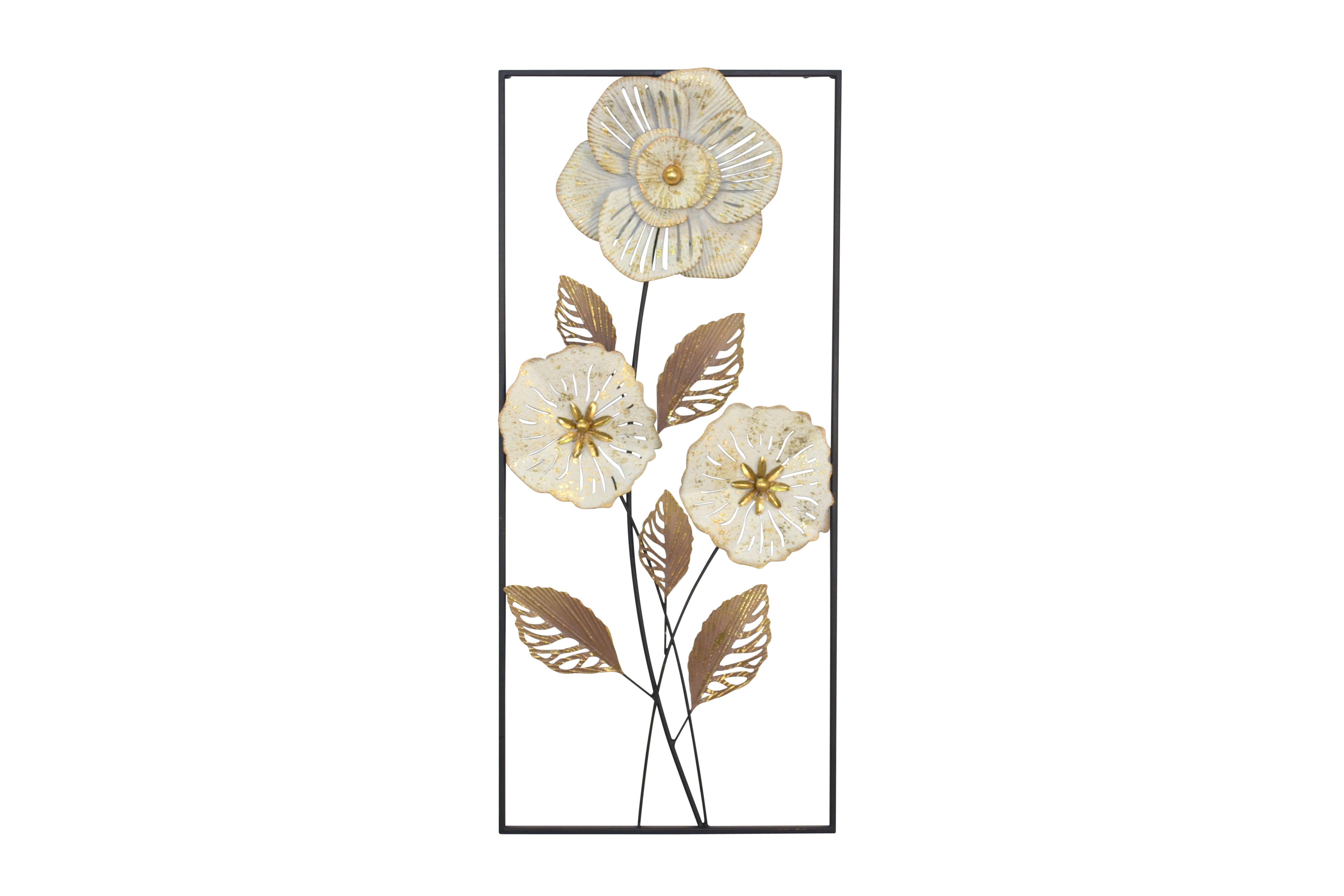 Décoration murale "Branche Fleurie" en métal – Noir, crème, brun et noir laqué DEC050051