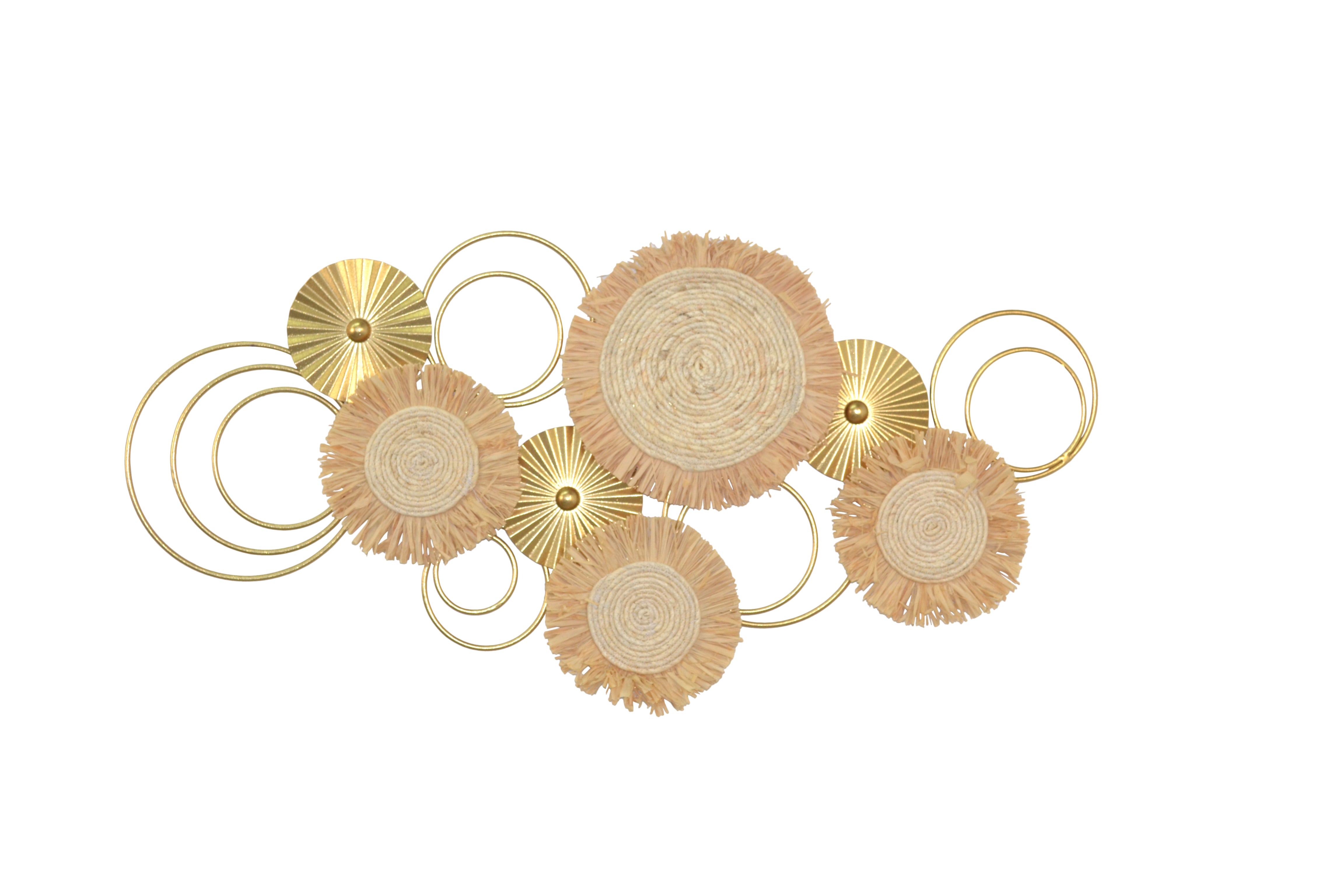 Décoration murale design en métal doré et corde naturelle – Formes circulaires 99 cm DEC050028