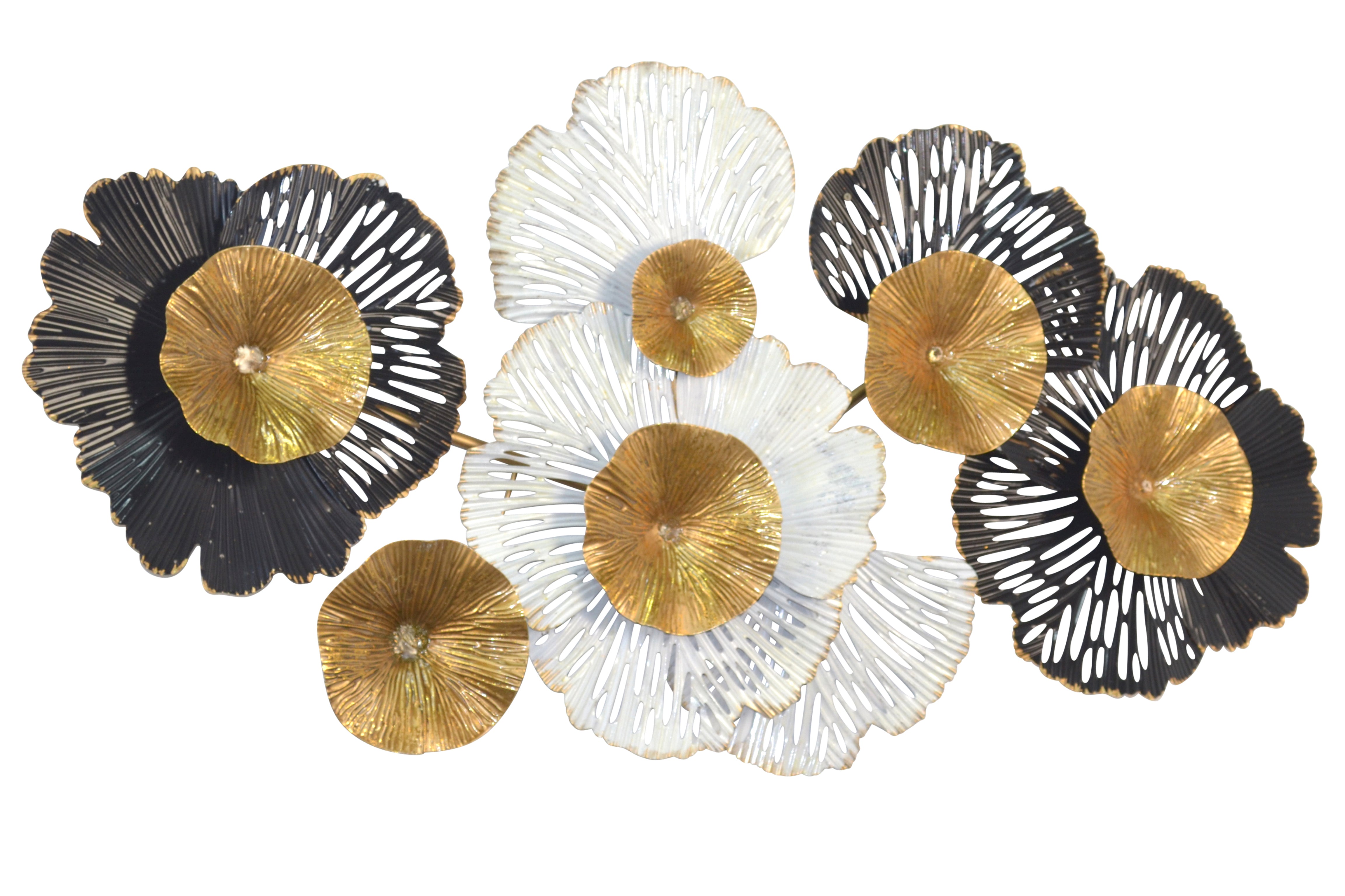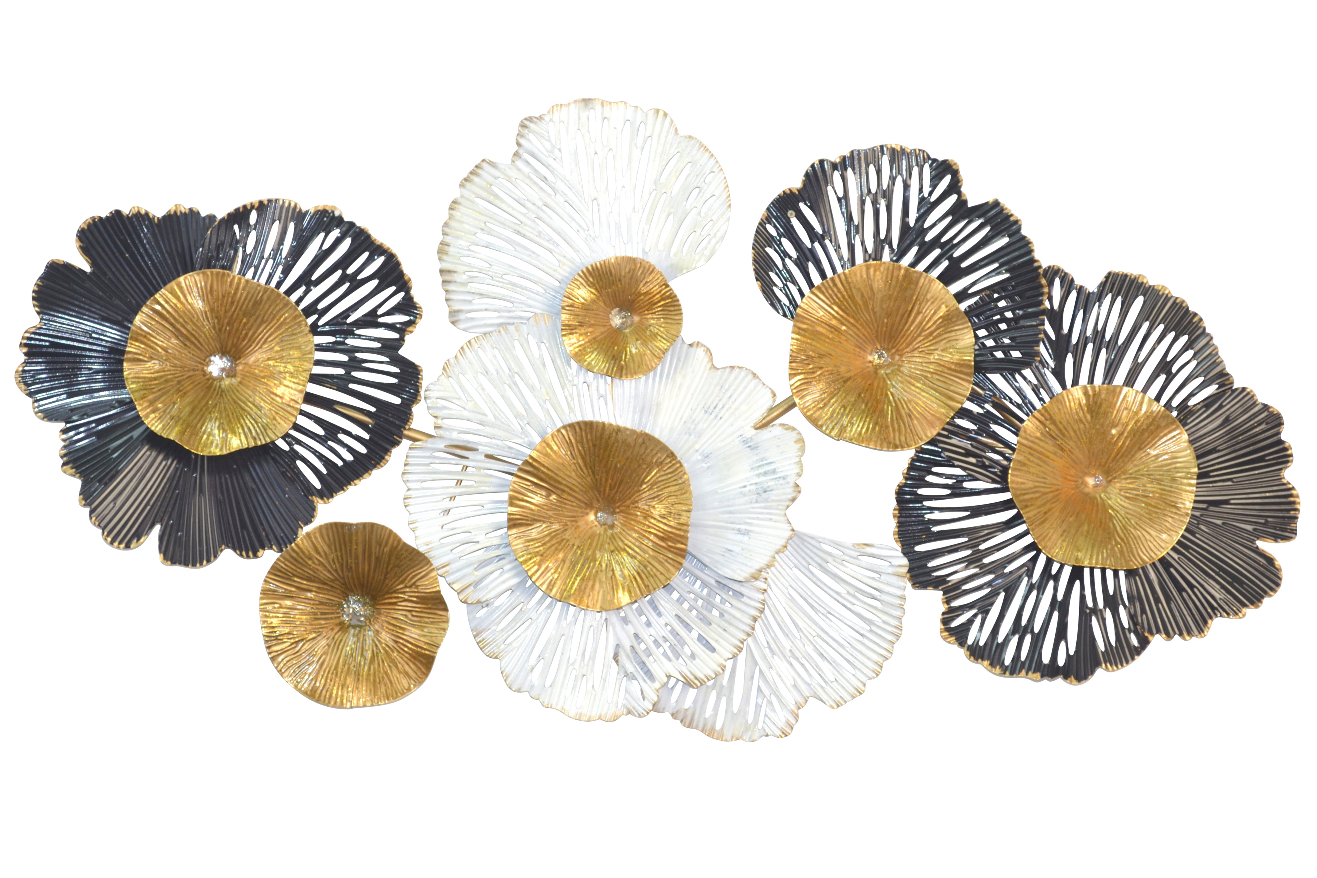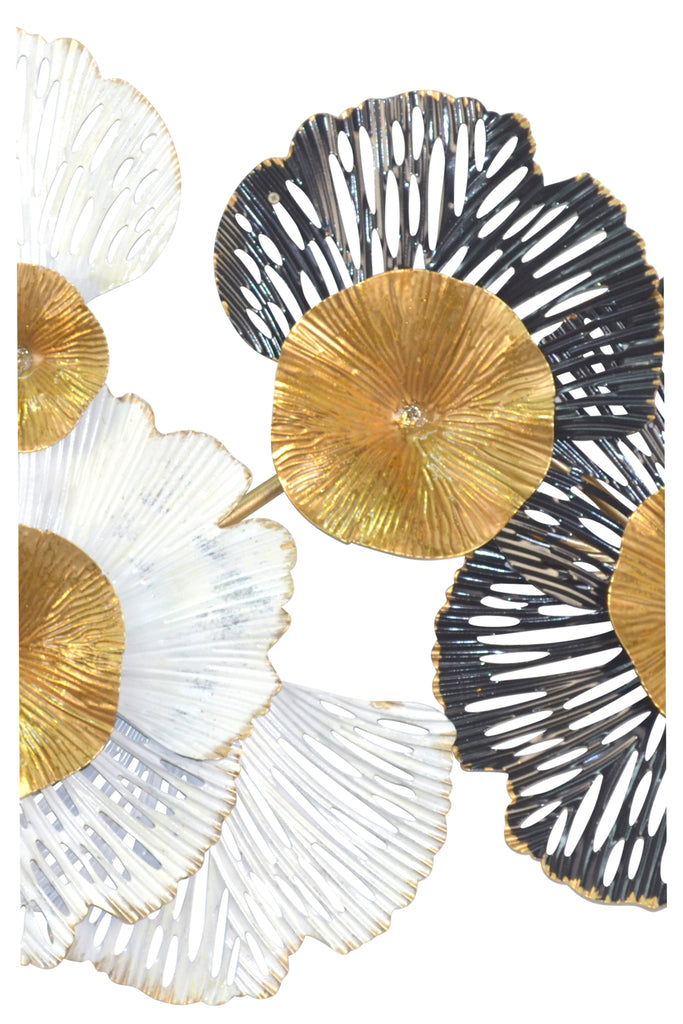 Décoration murale florale en métal – Noir, blanc et doré 98x6x50 cm DEC050035