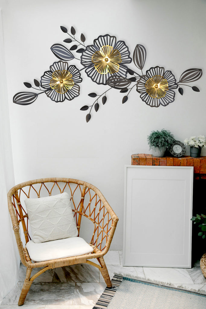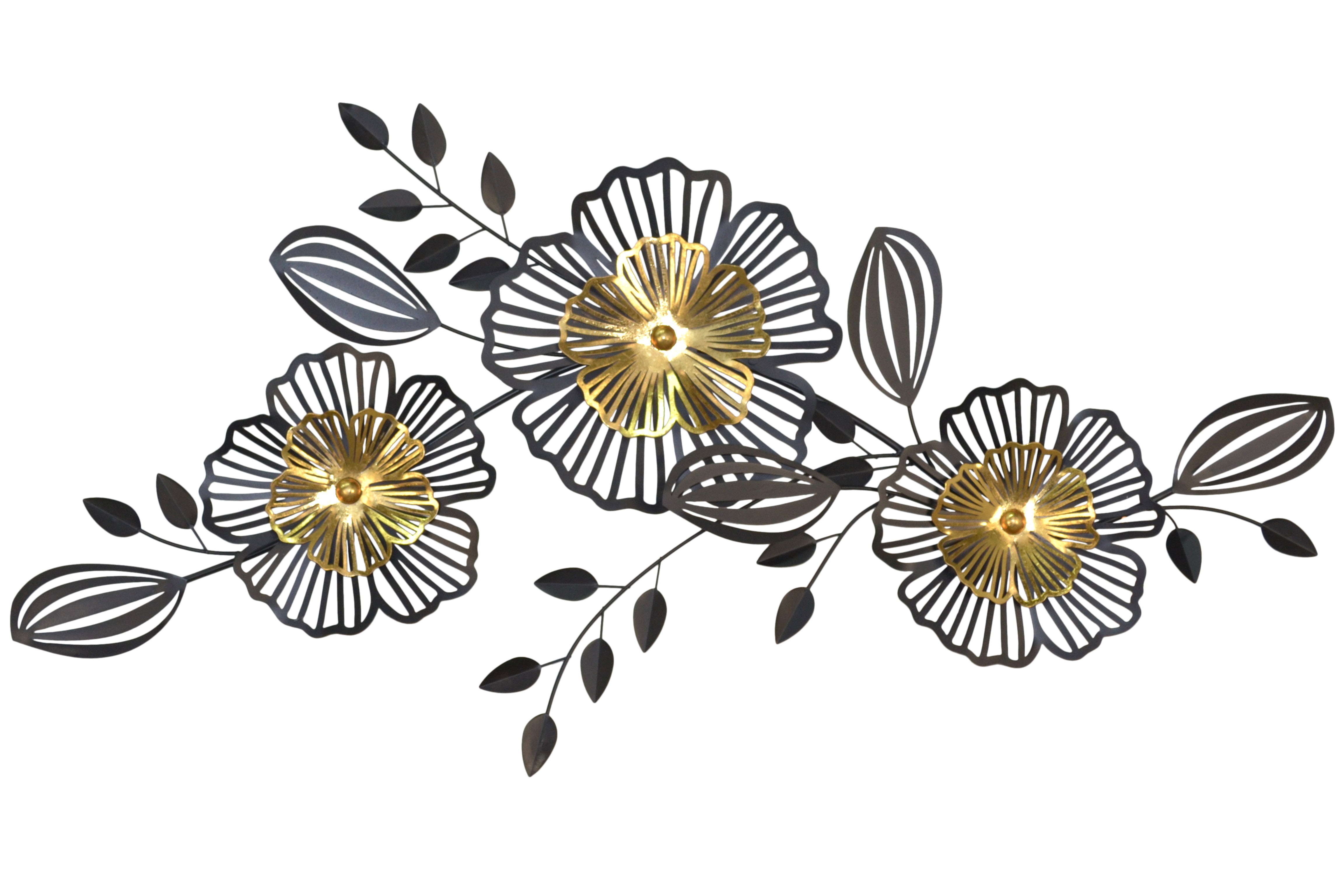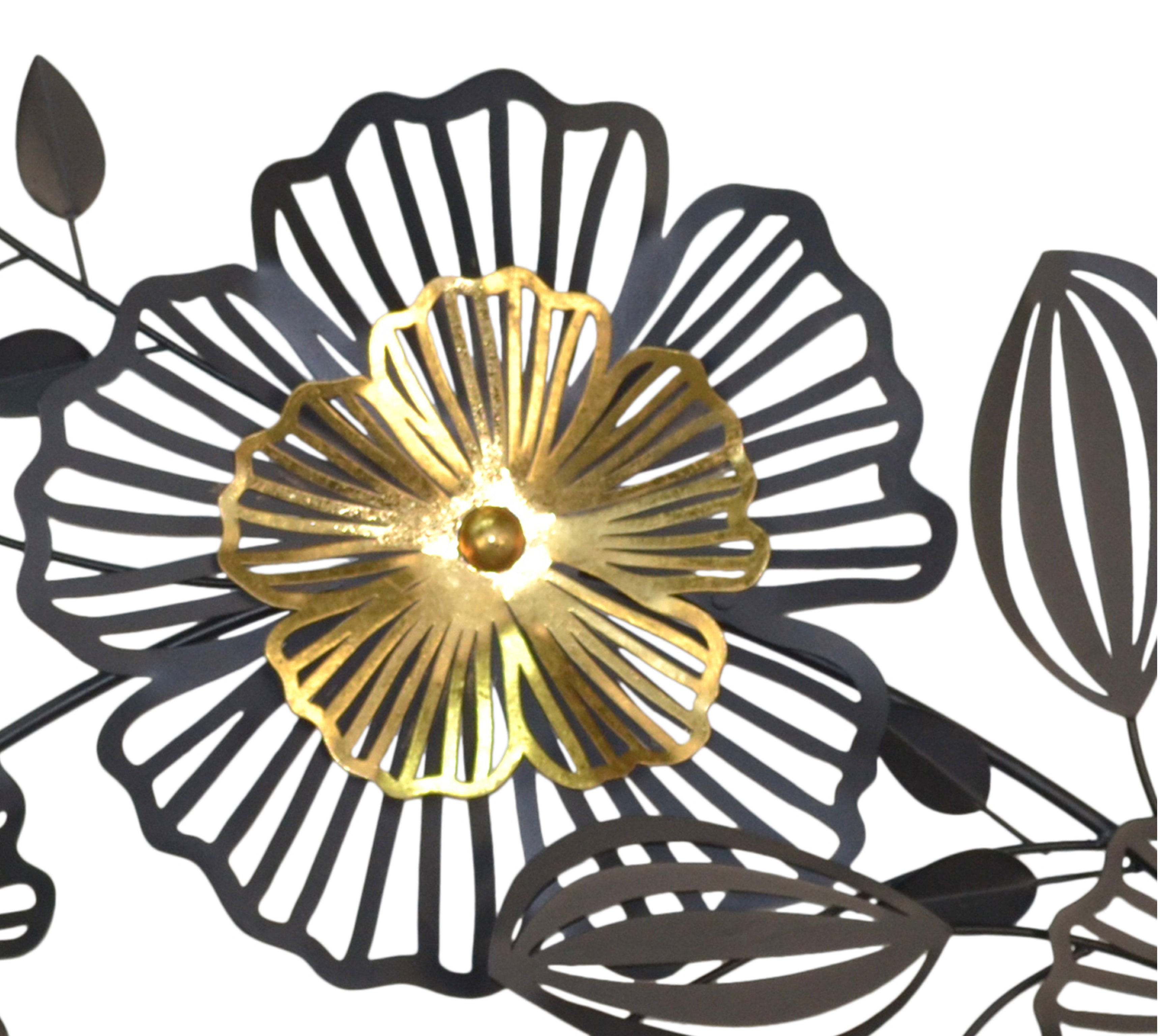 Décoration murale florale en métal noir et doré – Fleurs et feuilles DEC050050