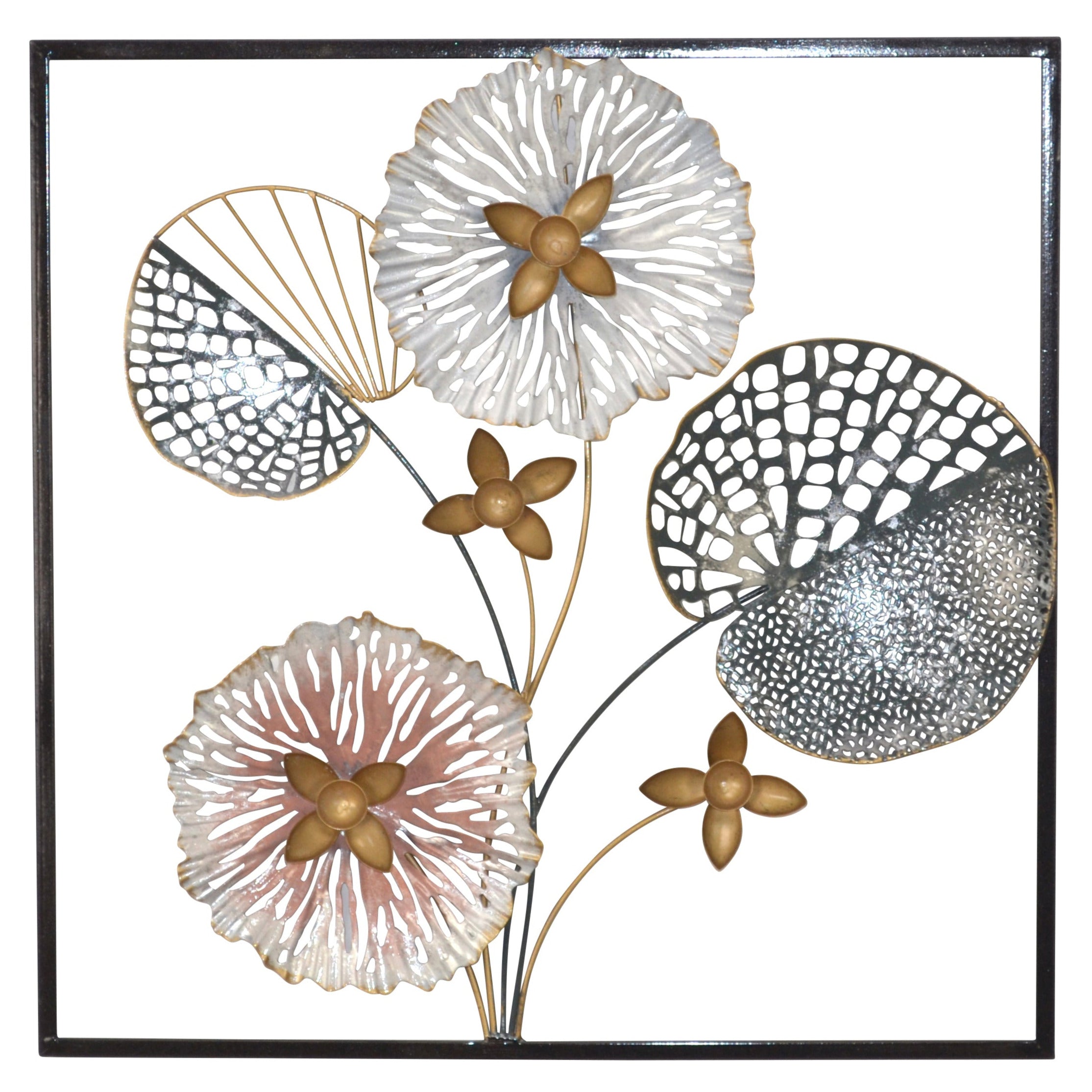 Décoration murale motif fleur or en métal
