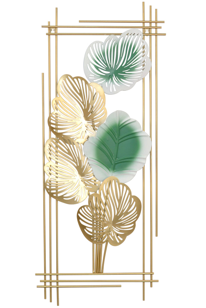 Décoration murale cadre feuille en métal – Vert et or 84 cm DEC050027