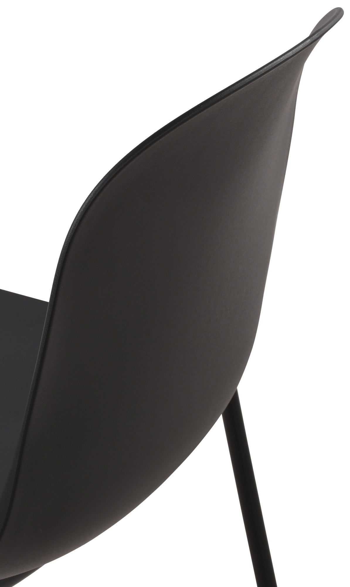 La coque d'assise est en polypropylène robuste, résistant aux UV et aux intempéries, un plastique de haute qualité. La structure est en acier thermolaqué, ce qui la rend résistante à la corrosion et à la rouille. Les couleurs de la coque d'assise et de la structure sont assorties.