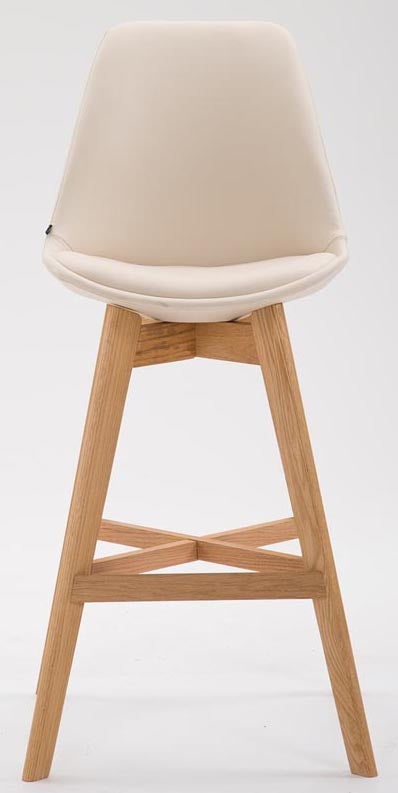 Lot de 2 tabourets de bar scandinaves coque plastique et PVC crème et pieds en bois massif 10_0005962