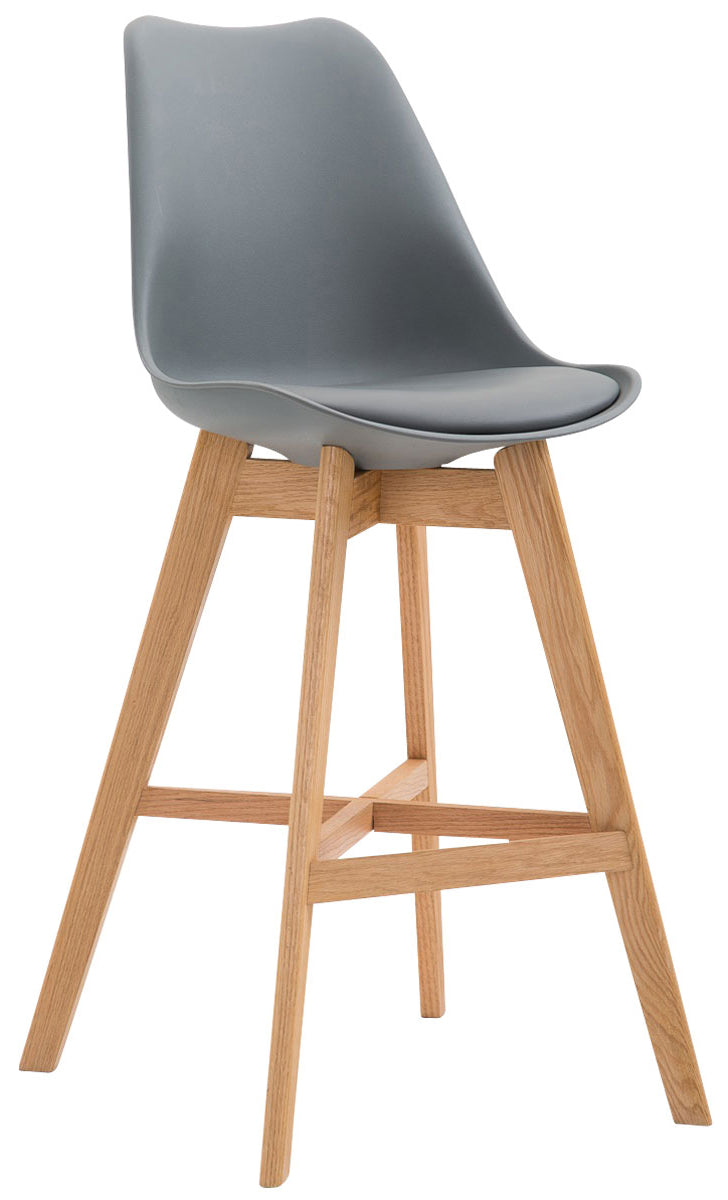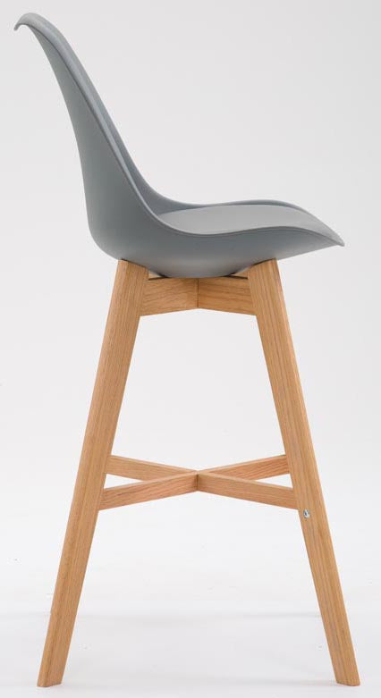 Lot de 2 tabourets de bar scandinaves coque plastique et PVC gris et pieds en bois massif 10_0005963