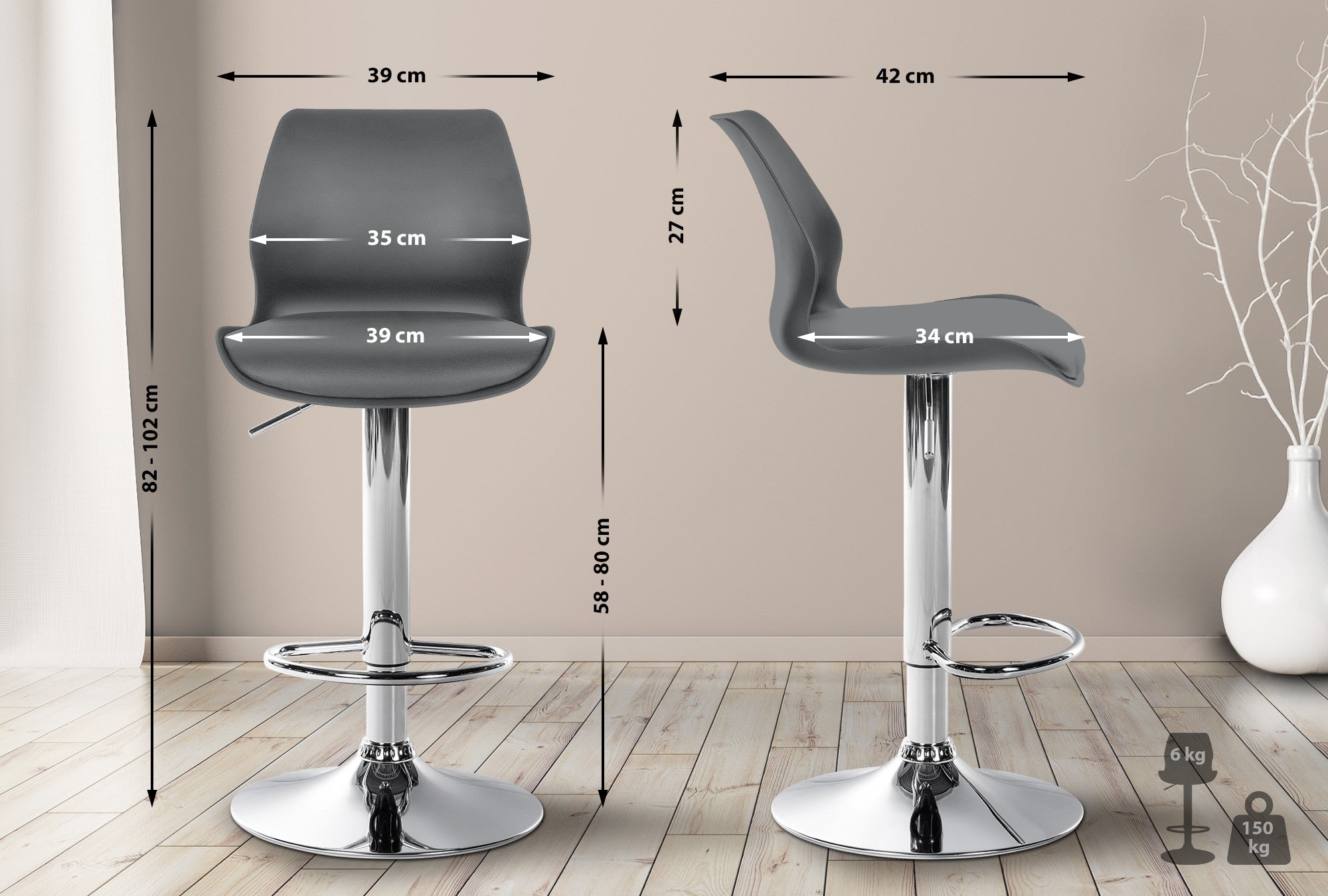 Hauteur d'assise : 58 - 80 cm
