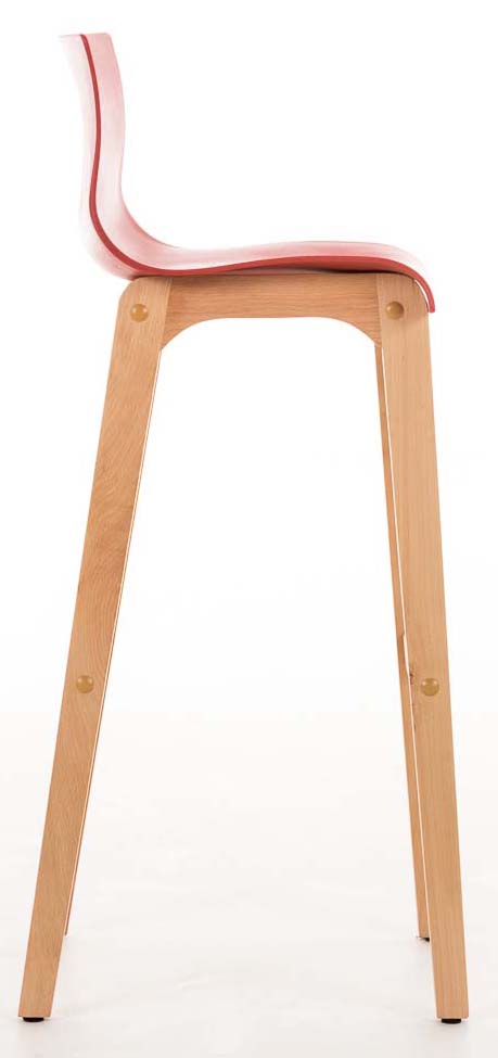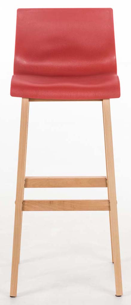 Lot de 2 tabourets de bar piètement à 4 pieds en bois assise plastique rouge style scandinave 10_0006196