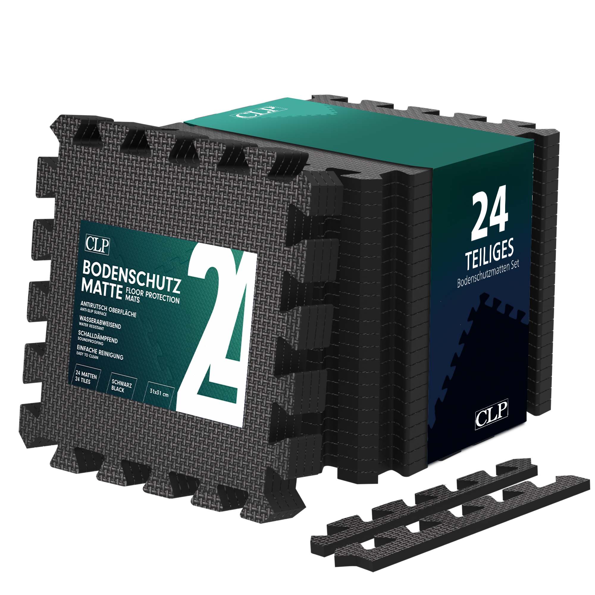 Tapis de protection de sol puzzle 24 pièces protection pour salle de sport atelier garage jeux 31x31 plastique noir 10_0009003