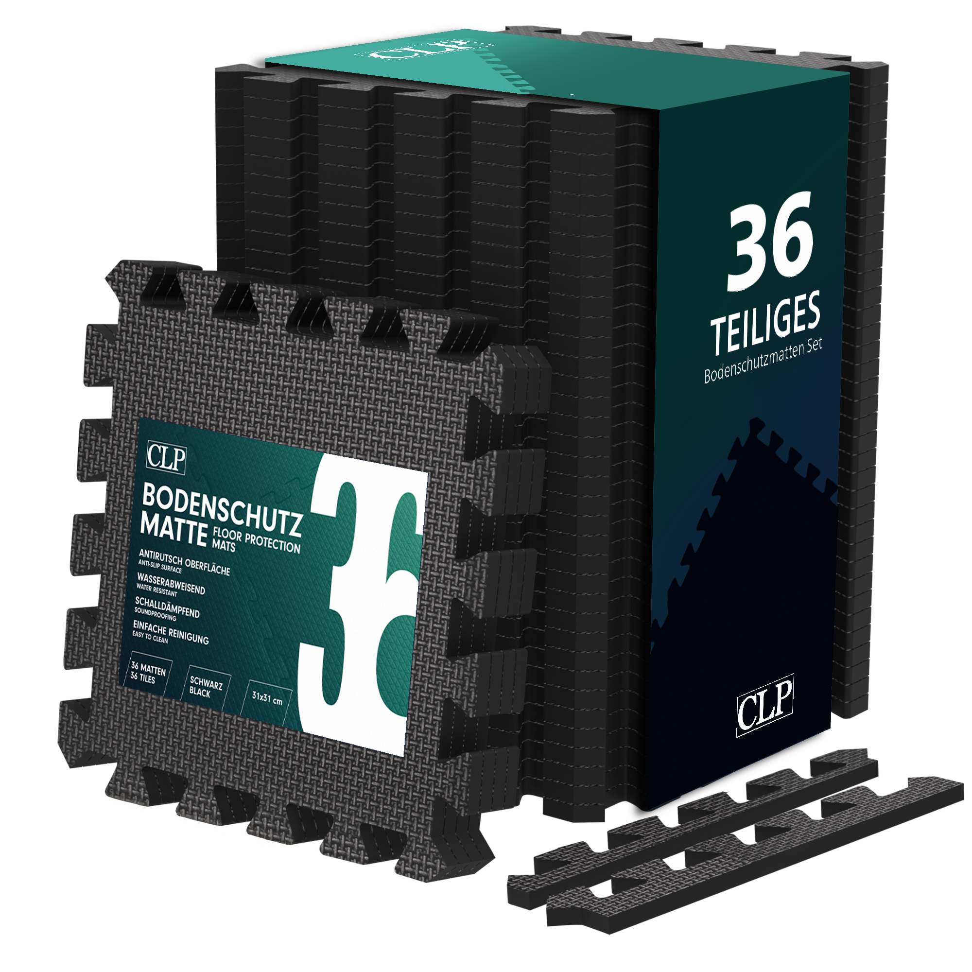 Tapis de protection de sol puzzle 36 pièces protection pour salle de sport atelier garage jeux 31x31 plastique noir 10_0009004
