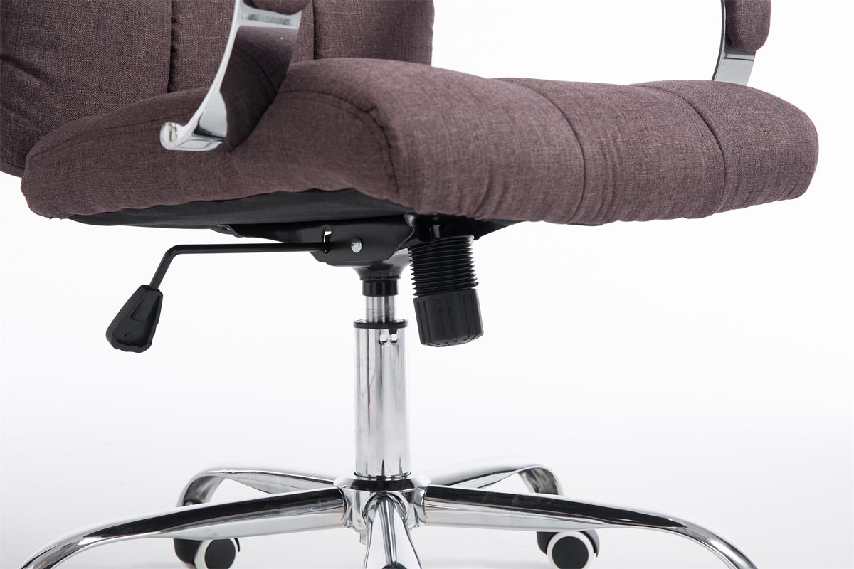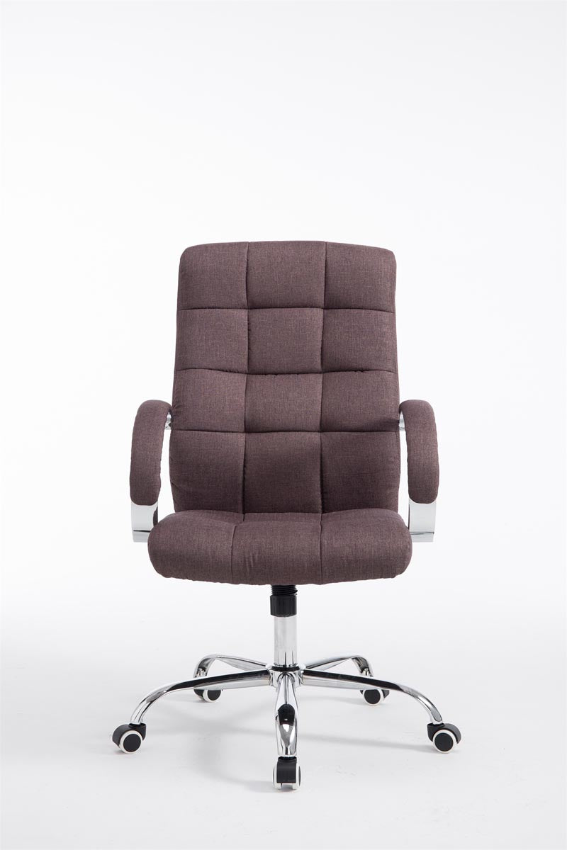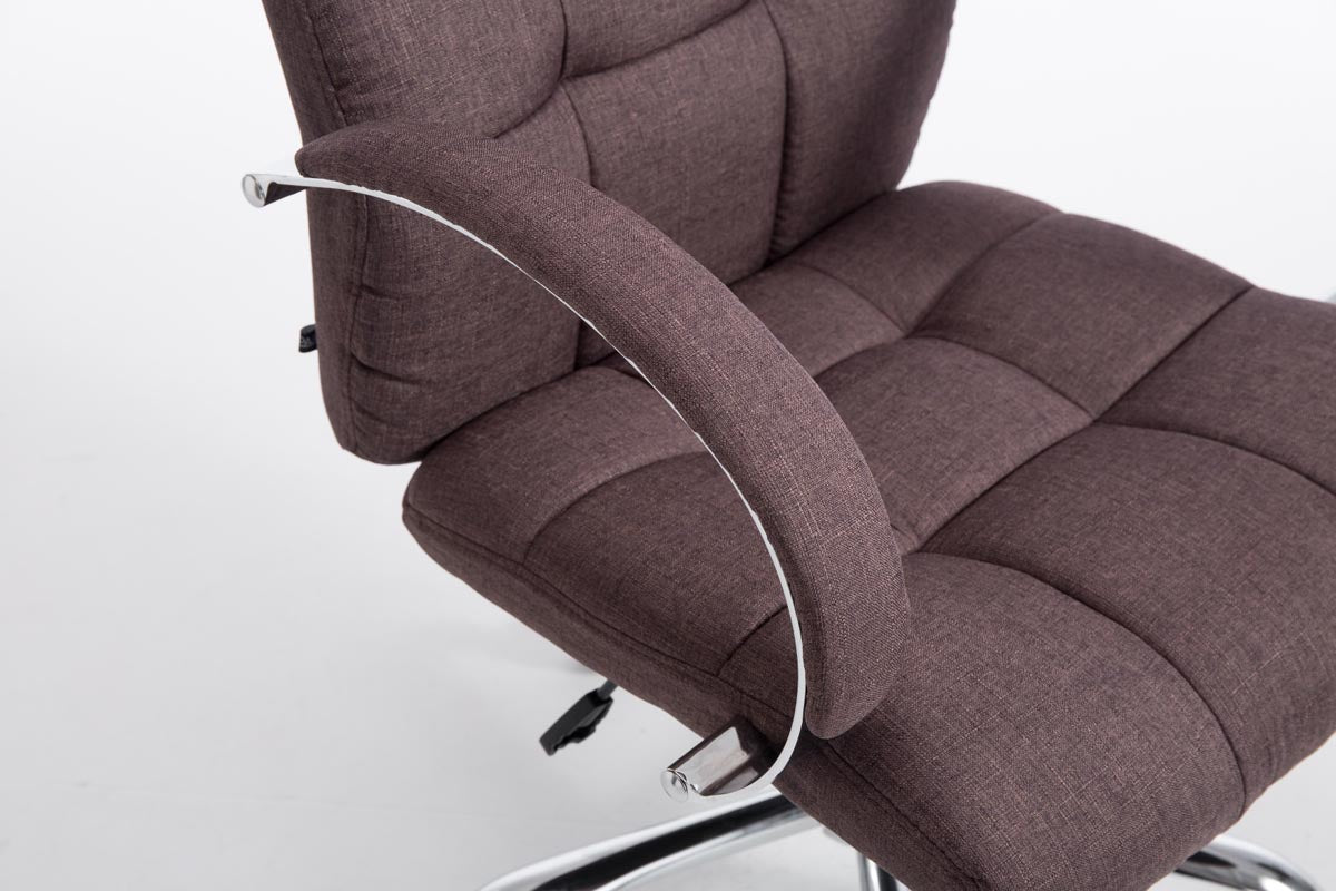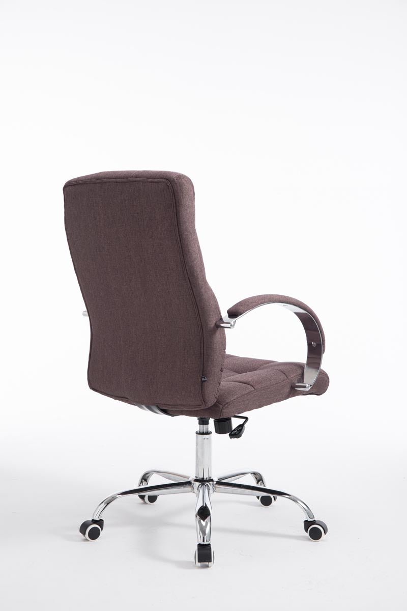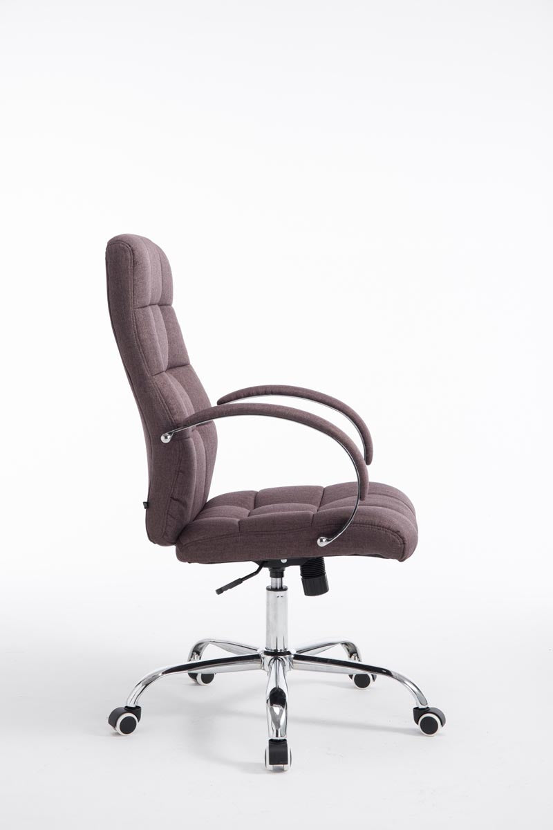 Fauteuil de bureau sur roulettes généreusement rembourrée en tissu marron et métal chromé 10_0002548