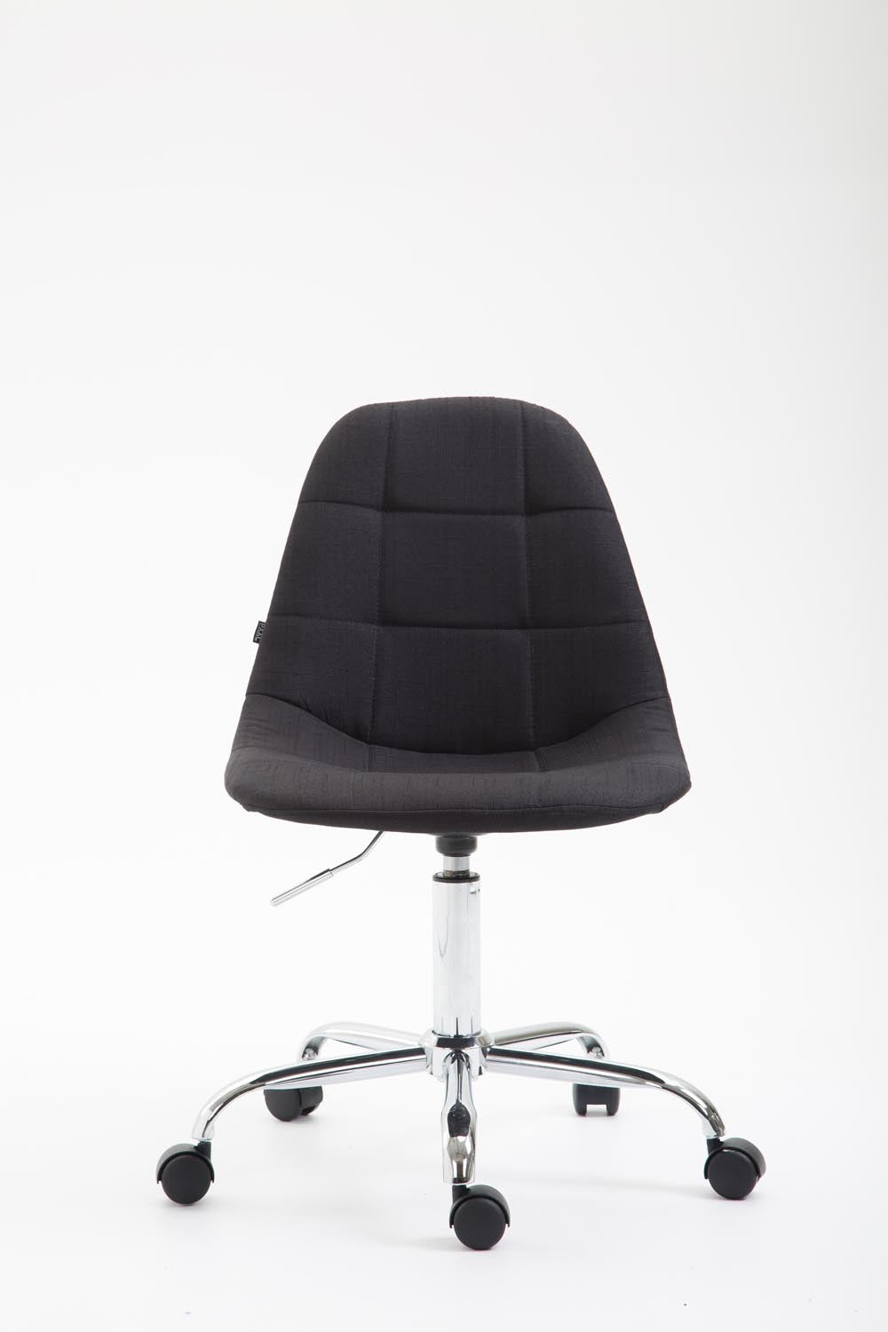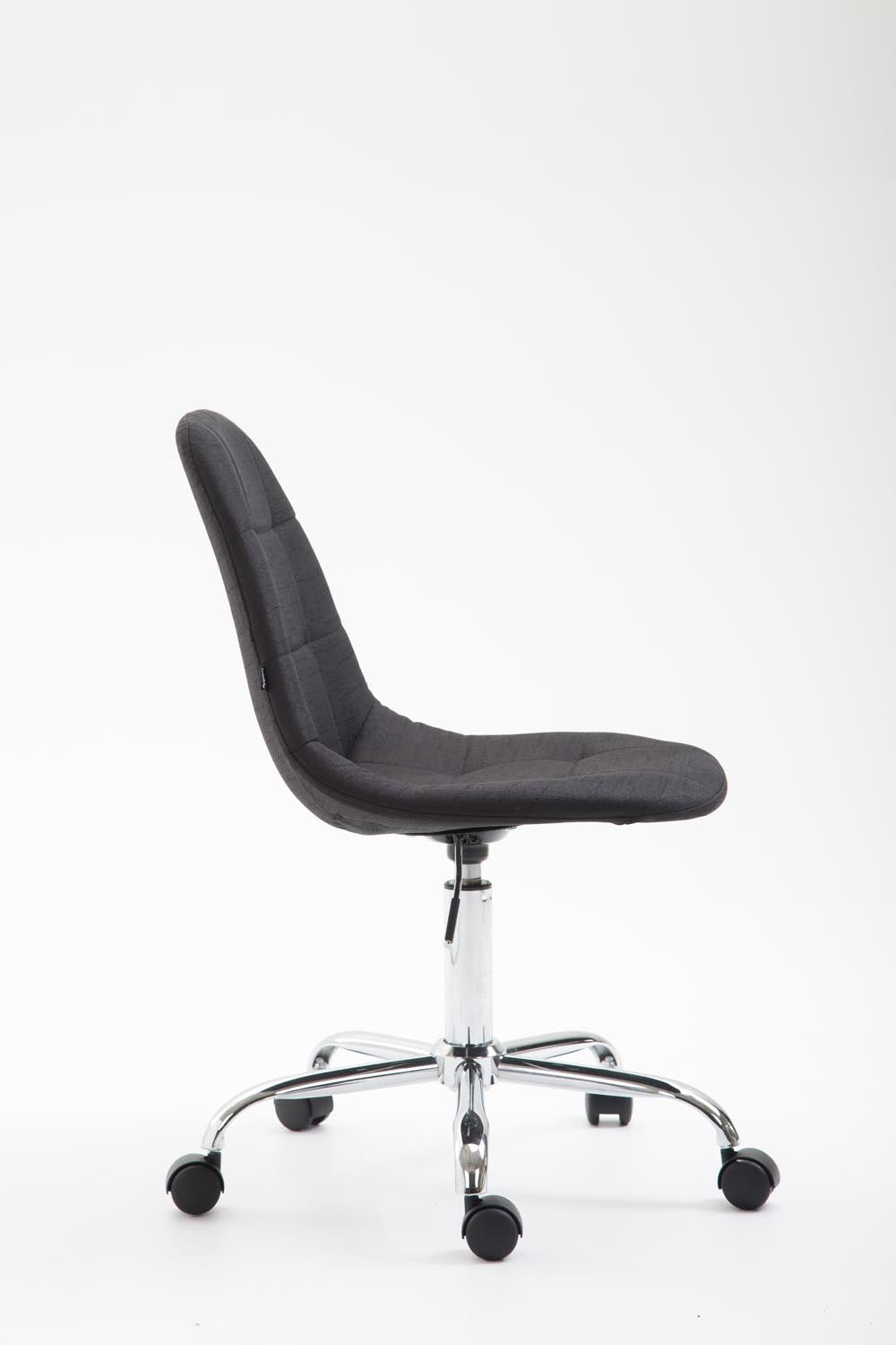 Chaise de bureau tabouret de travail sur roulettes dossier arrondie en tissu noir et métal chromé 10_0002640