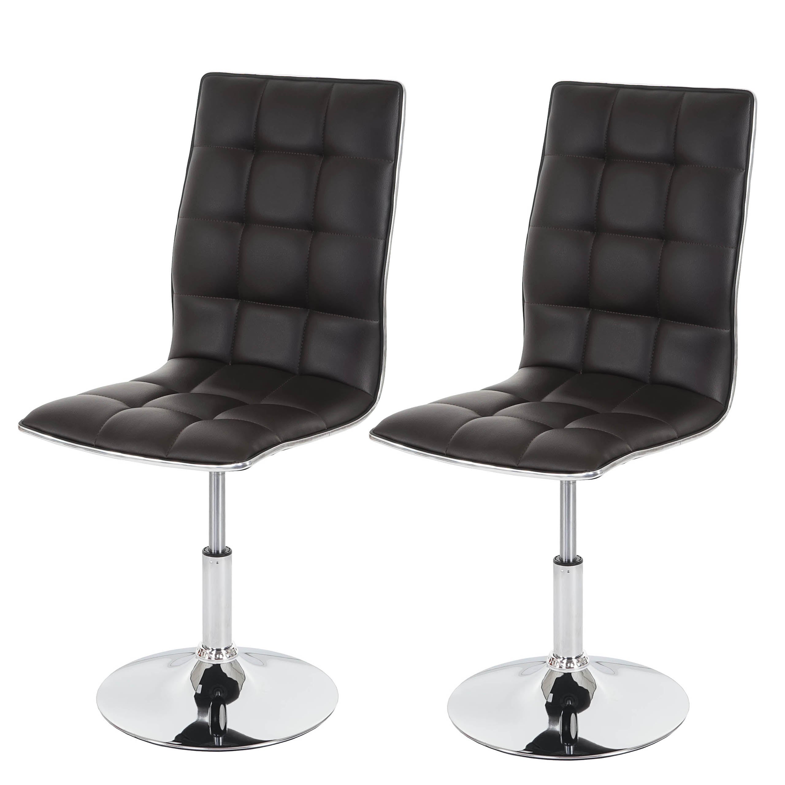 Lot de 2 chaises de salle à manger réglable en hauteur et rotative en PVC marron base en métal 04_0007347