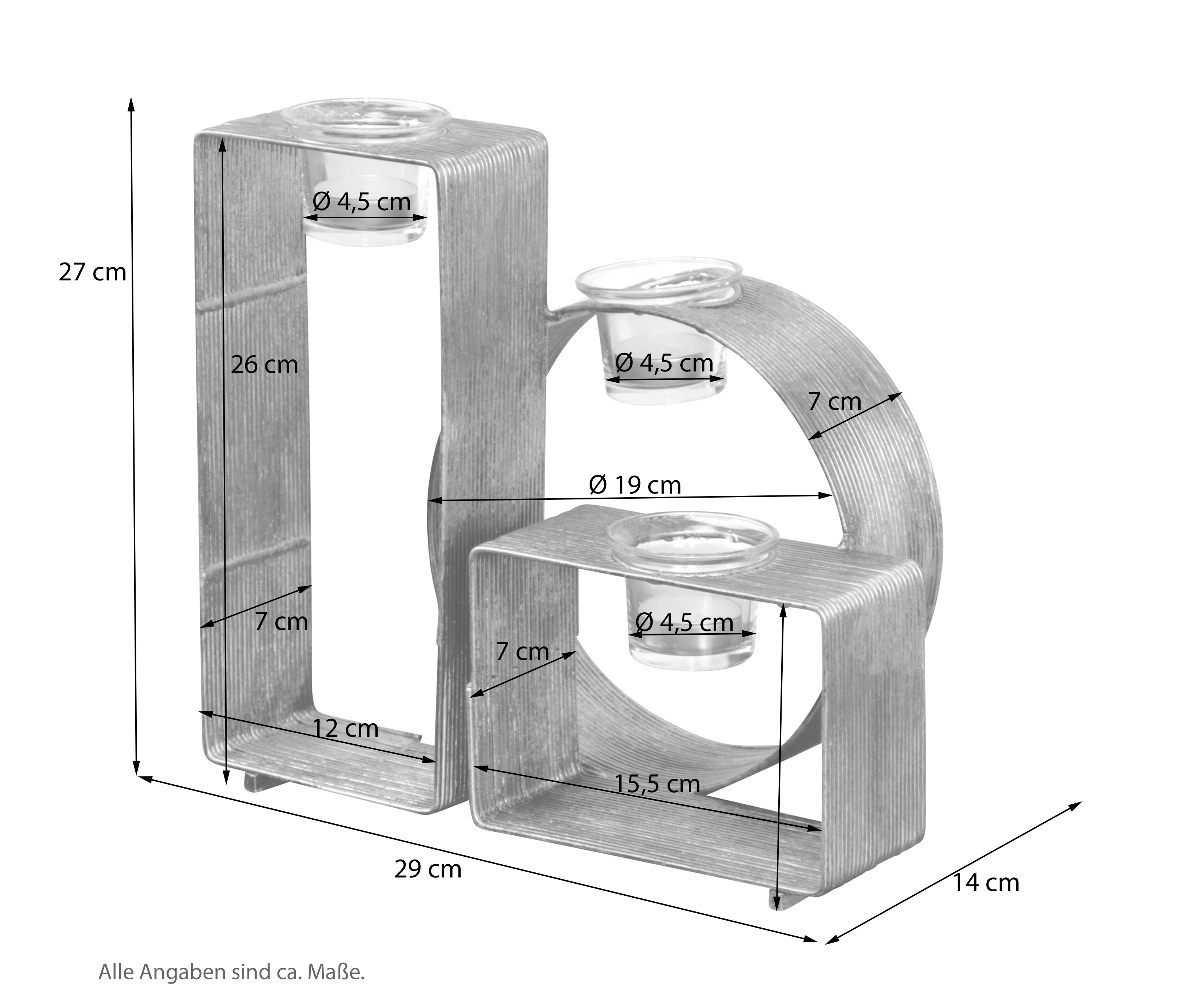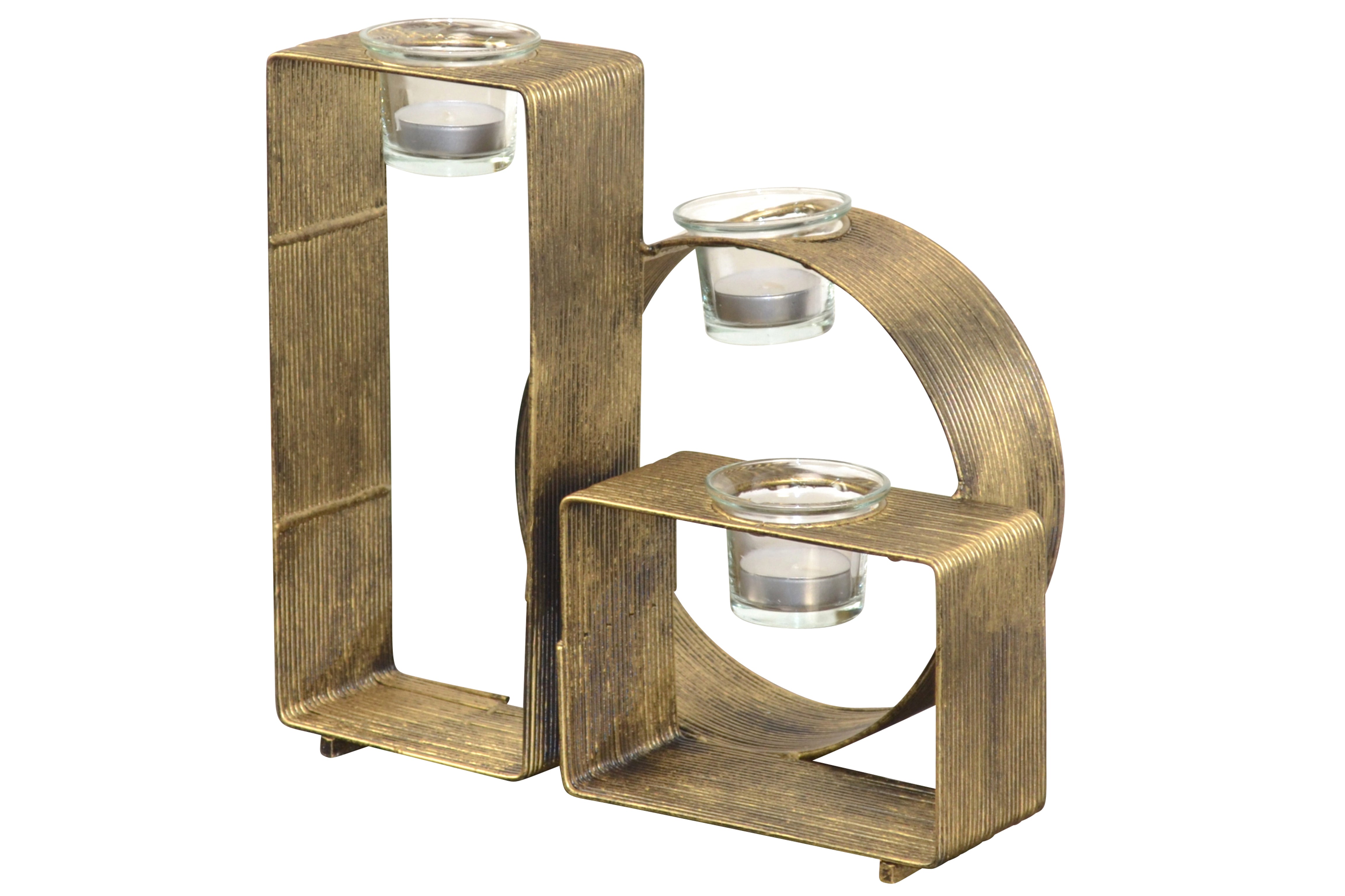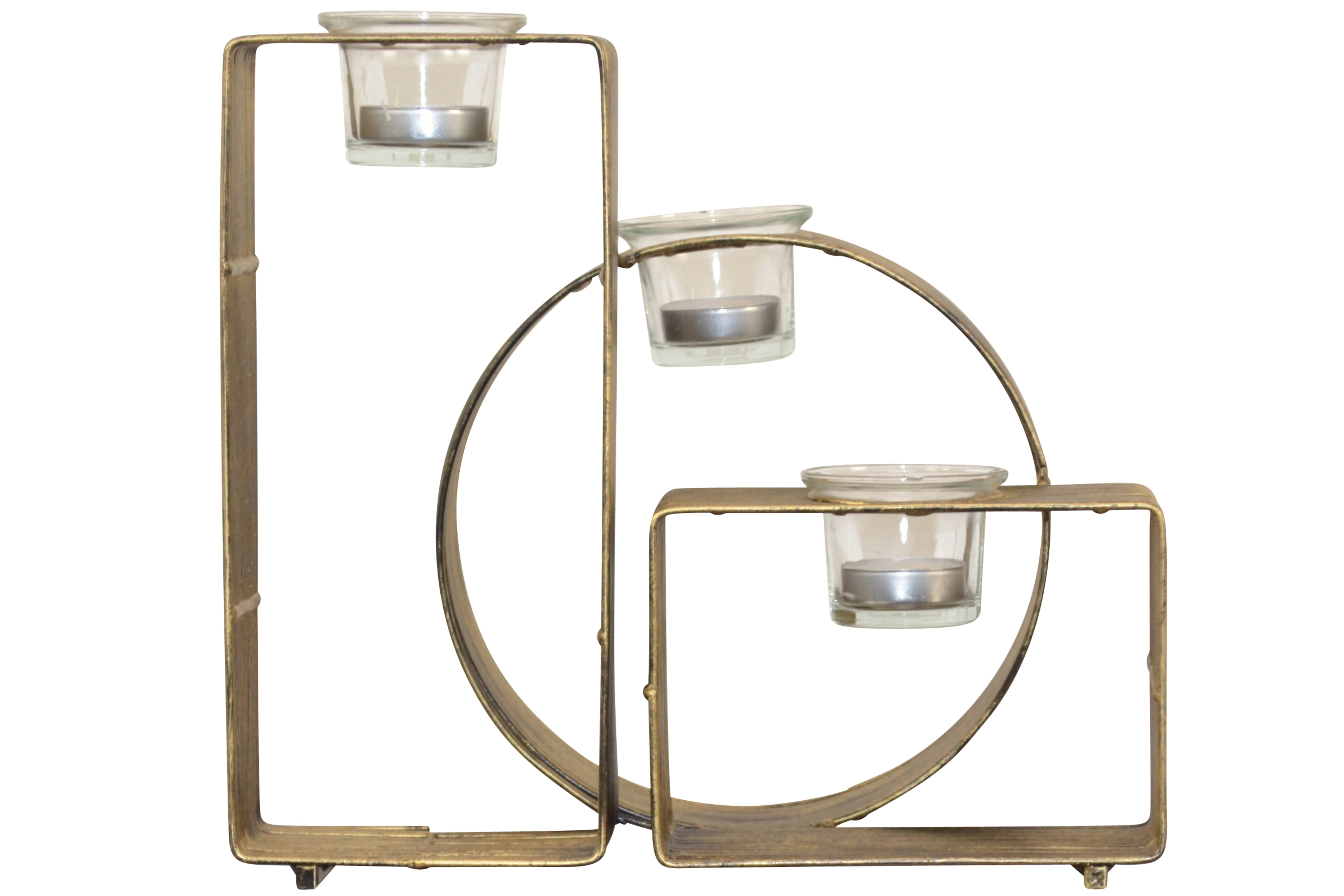 Ce support est équipé de trois photophores en verre transparent, idéalement répartis pour créer une ambiance chaleureuse et harmonieuse sur une table, un buffet ou une étagère. Les bougies chauffe-plat ne sont pas incluses, vous laissant la liberté de choisir votre parfum ou couleur préférée.
