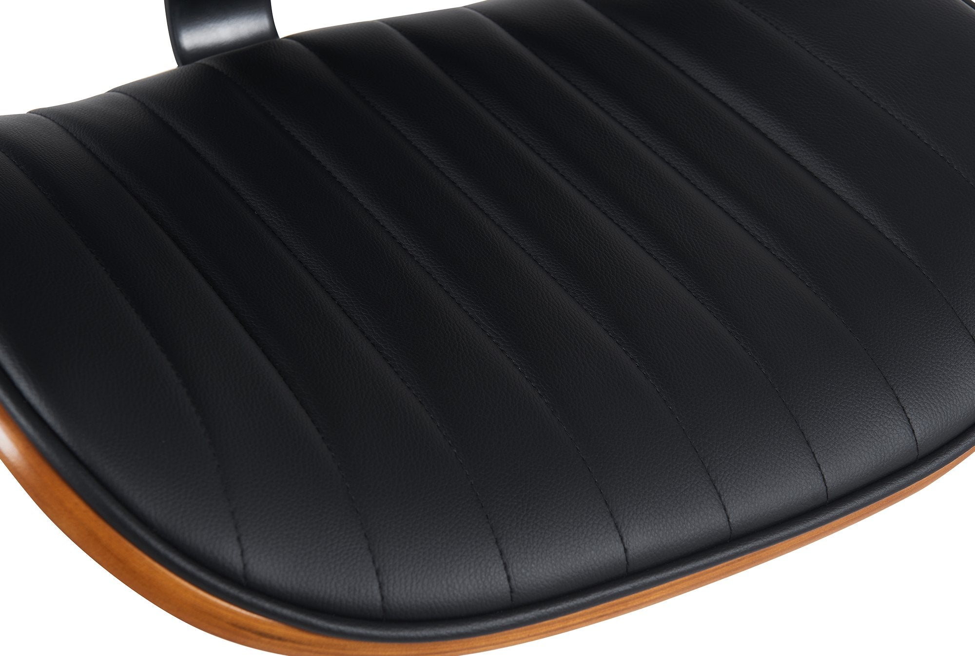Tabouret de bar x1 style rétro moderne assise en similicuir noir bois noyer et cadre métal chromé 10_0005965