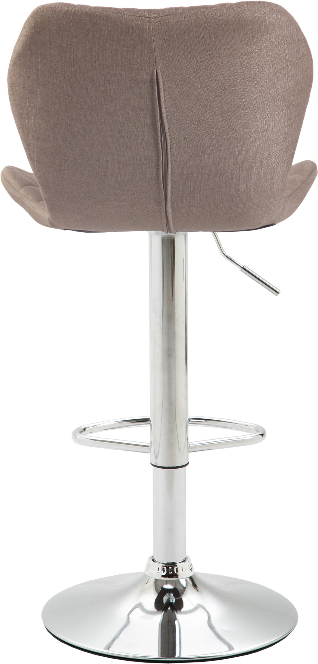 Tabouret de bar x1 avec coutures décoratives en forme de losanges en tissu taupe et métal chromé 10_0004656