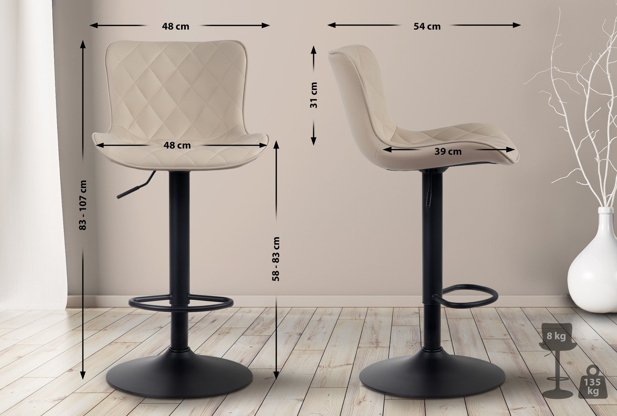 Hauteur totale: 83 - 107 cm