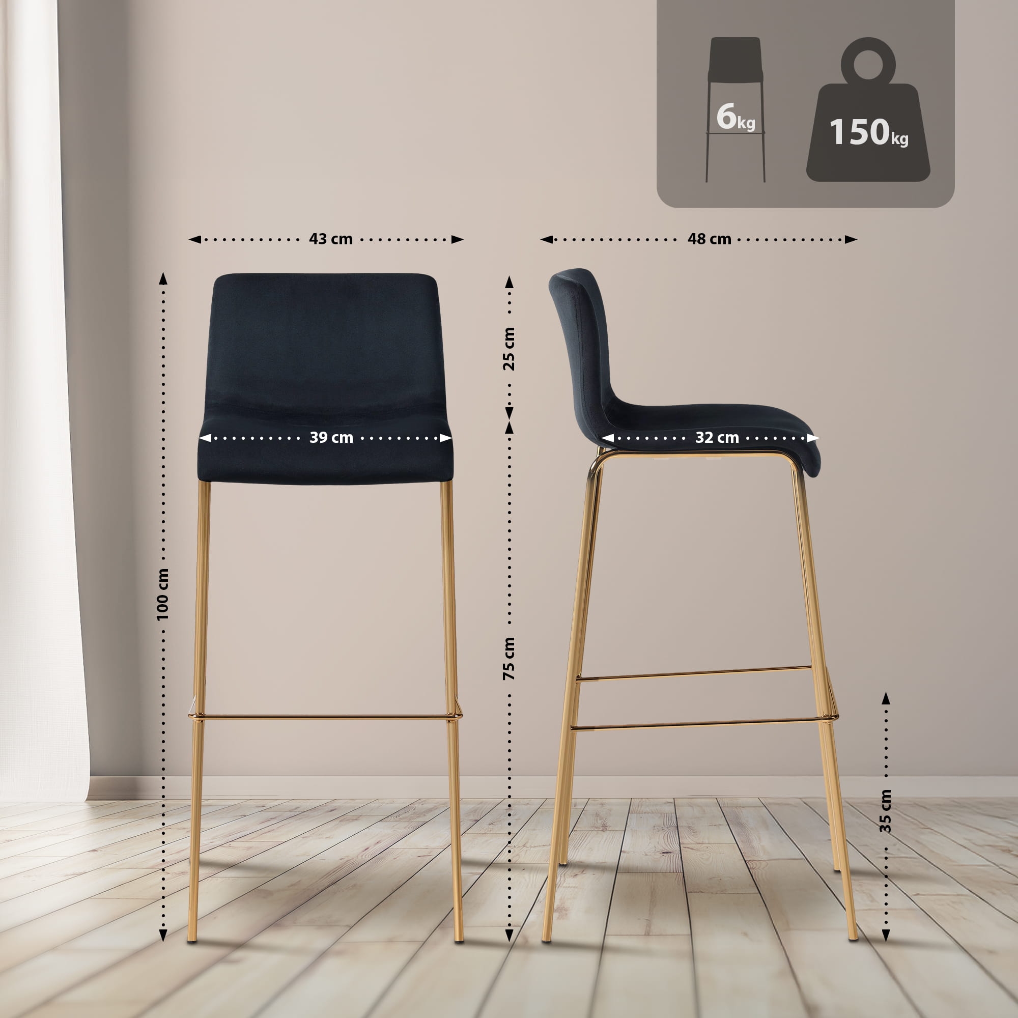 Tabouret de bar x1 en velours noir cadre métallique doré à quatre pieds style chic et moderne 10_0005850