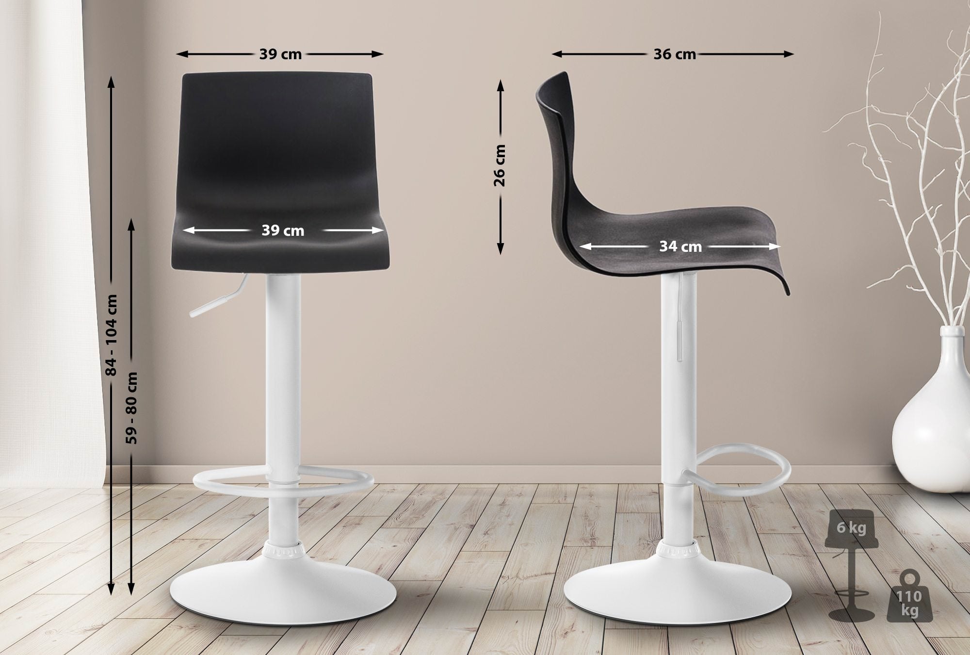Tabouret de bar x1 avec repose-pieds pivotant dossier incurvé en plastique noir et métal blanc 10_0004983