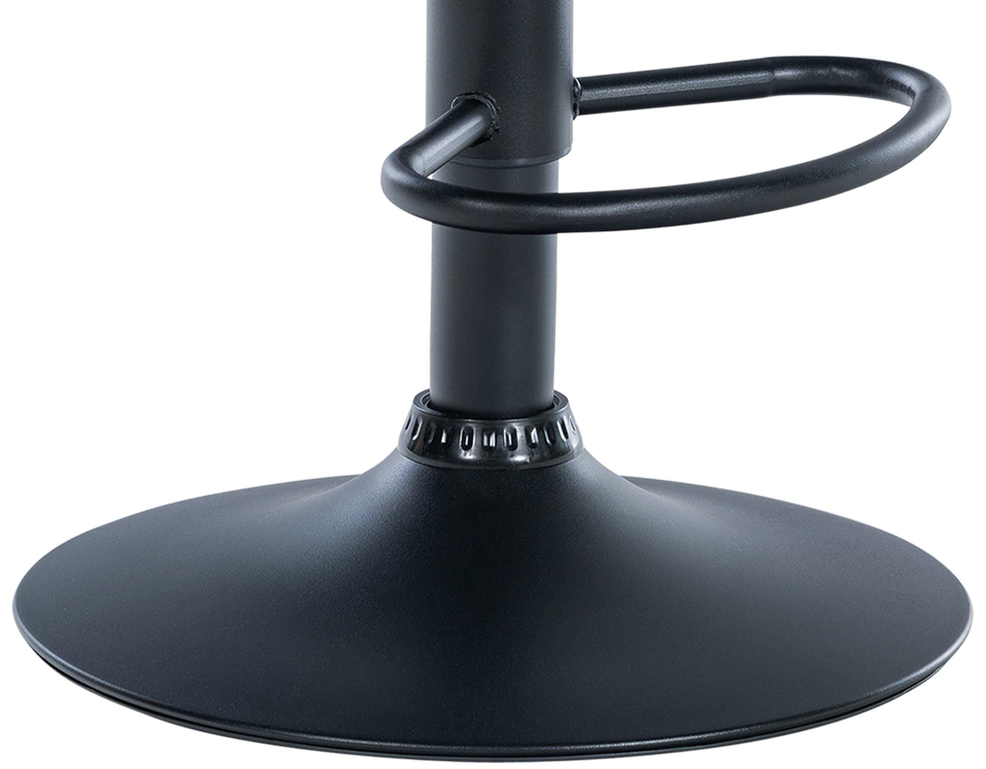Le tabouret de bar se dresse sur une structure en forme trompette en métal qui possède un confortable repose-pied.