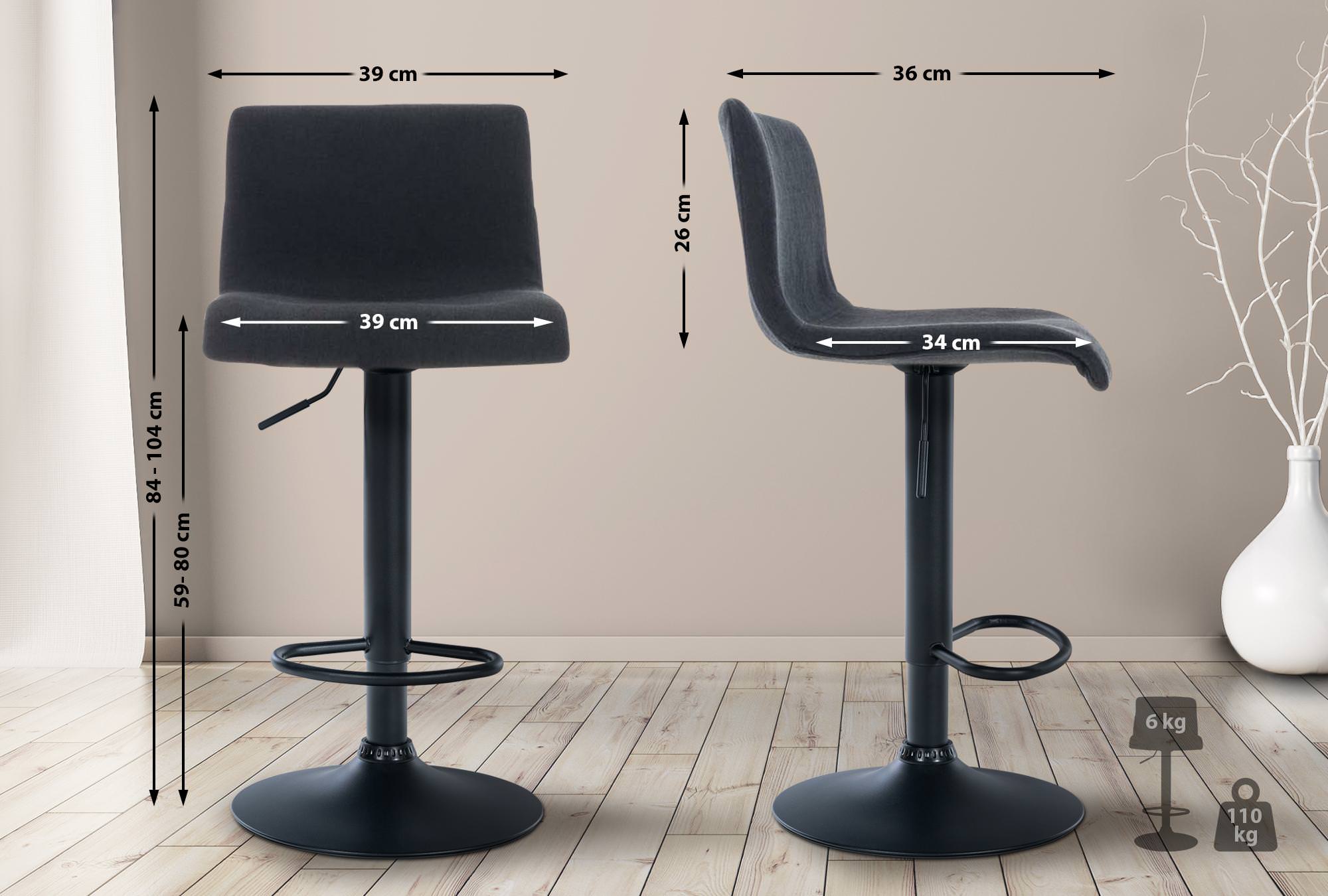 Tabouret de bar x1 avec repose-pieds pivotant dossier incurvé en tissu noir et métal noir 10_0004963