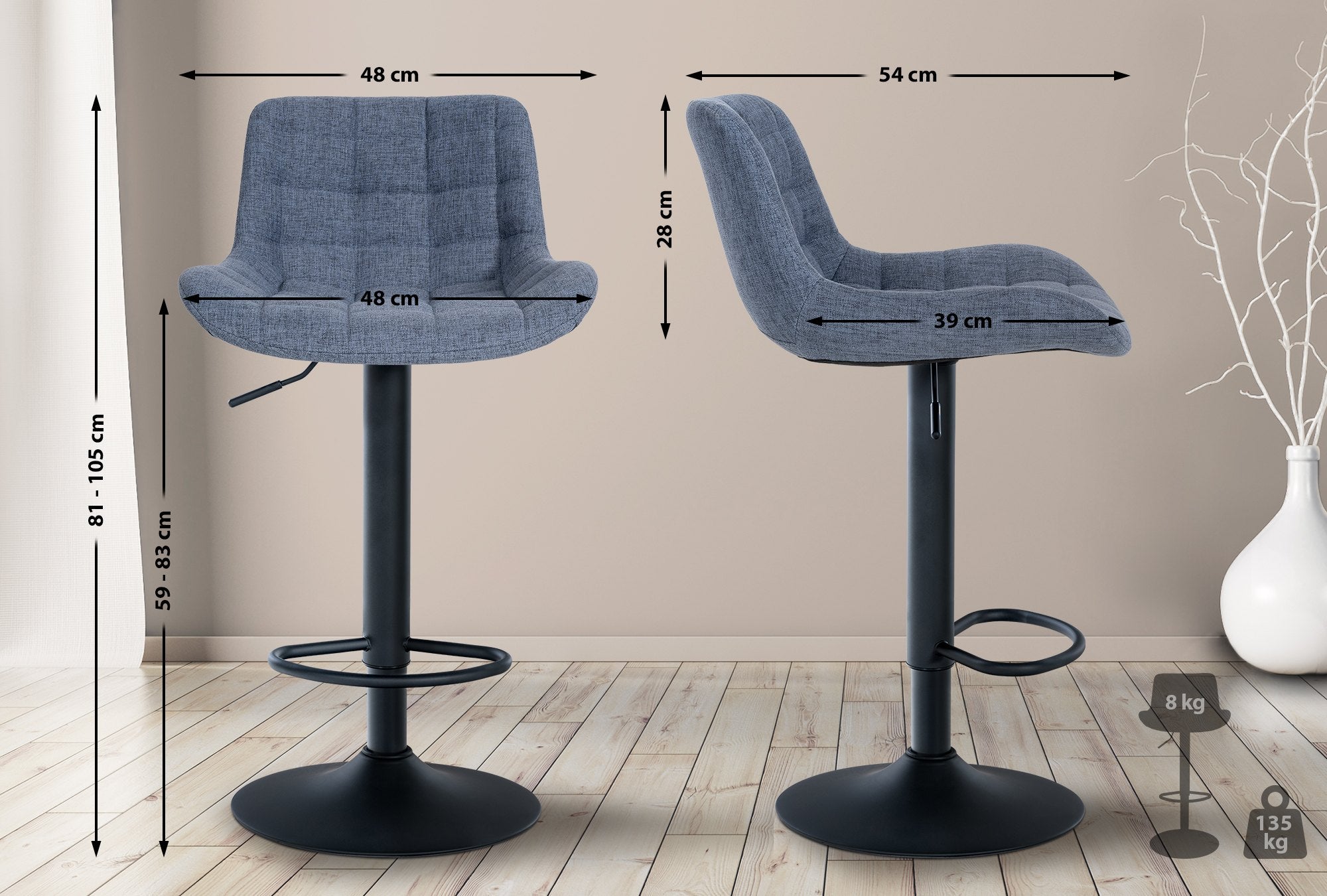 Grâce à sa structure métallique, le tabouret peut pivoter à 360° et est également réglable en hauteur, ce qui permet de l'adapter aux besoins individuels de l'utilisateur. Le pied stable, doté d'un repose-pied et de protections pour le sol, assure une stabilité supplémentaire et une expérience d'assise agréable, même sur une longue période.