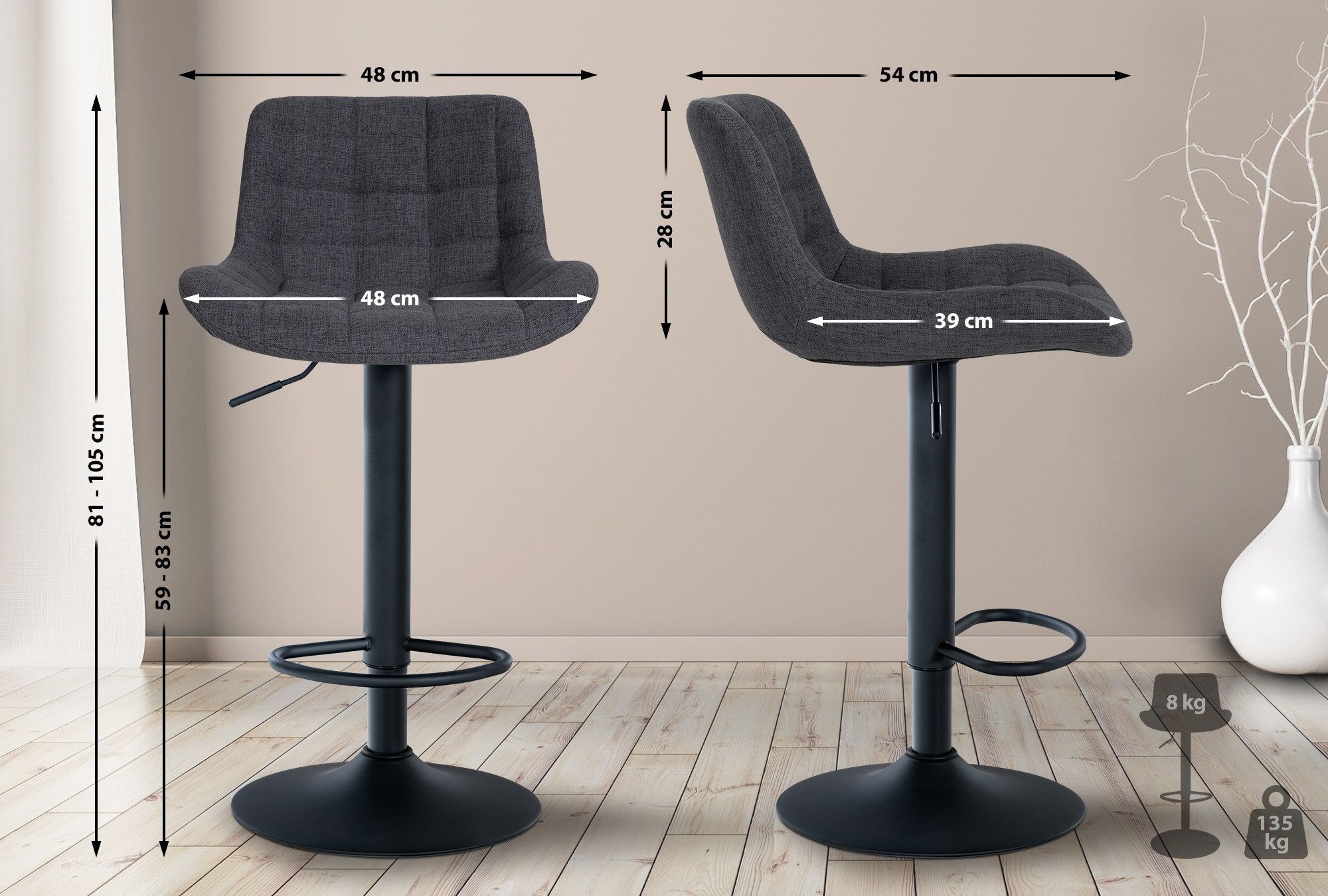 Grâce à sa structure métallique, le tabouret peut pivoter à 360° et est également réglable en hauteur, ce qui permet de l'adapter aux besoins individuels de l'utilisateur. Le pied stable, doté d'un repose-pied et de protections pour le sol, assure une stabilité supplémentaire et une expérience d'assise agréable, même sur une longue période.