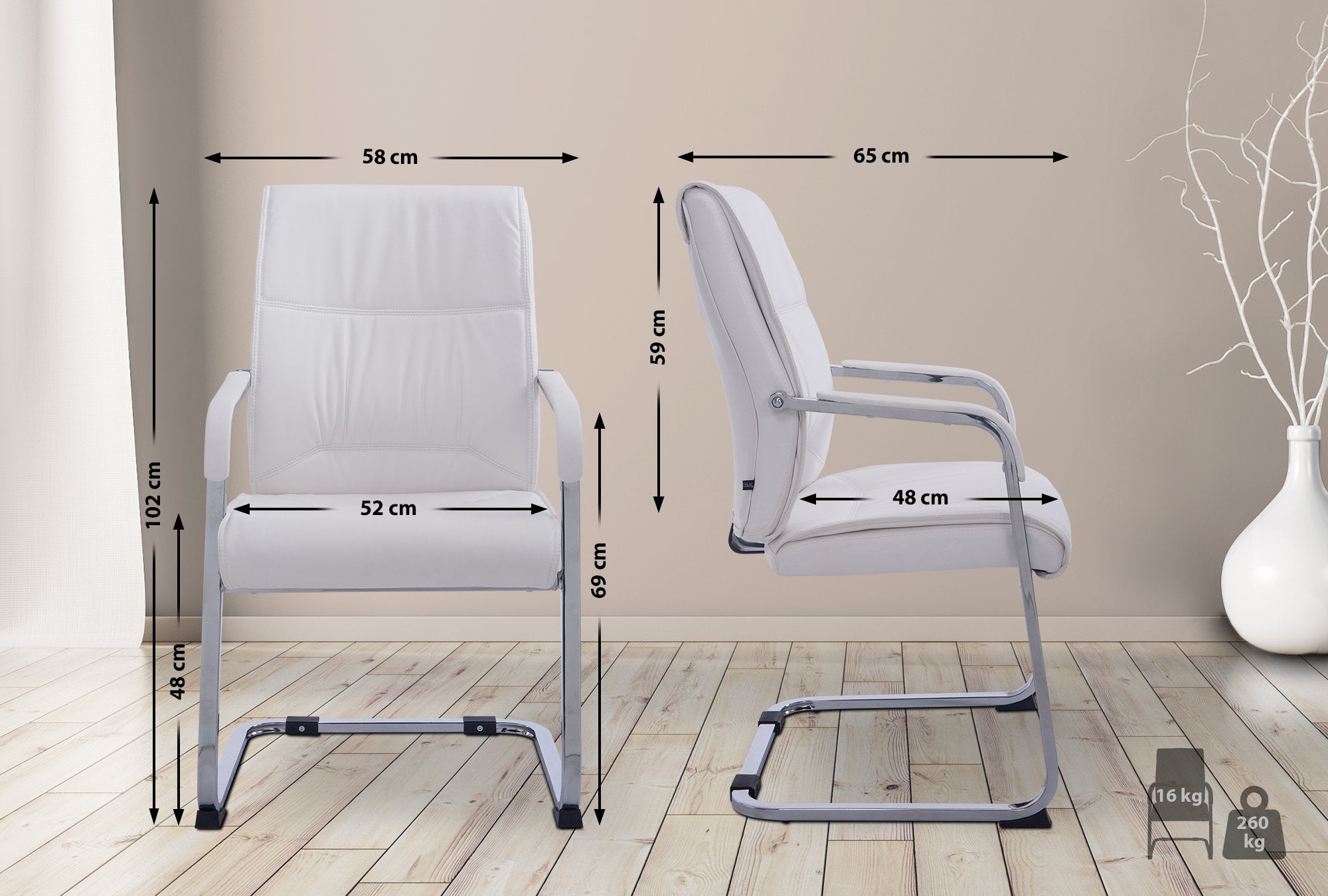 Fauteuil de bureau sans roulettes chaise visiteur sans roulettes jusqu'à 260kg en PVC blanc 10_0002775