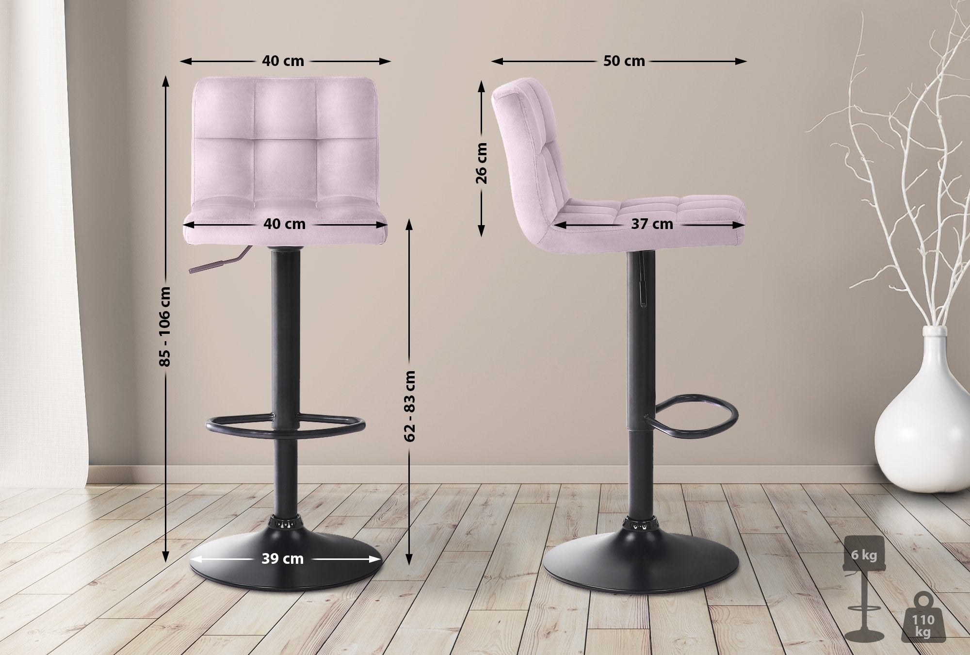 Lot de 2 tabourets de bar en velours rose coutures décoratives piètement métal noir 10_0004149