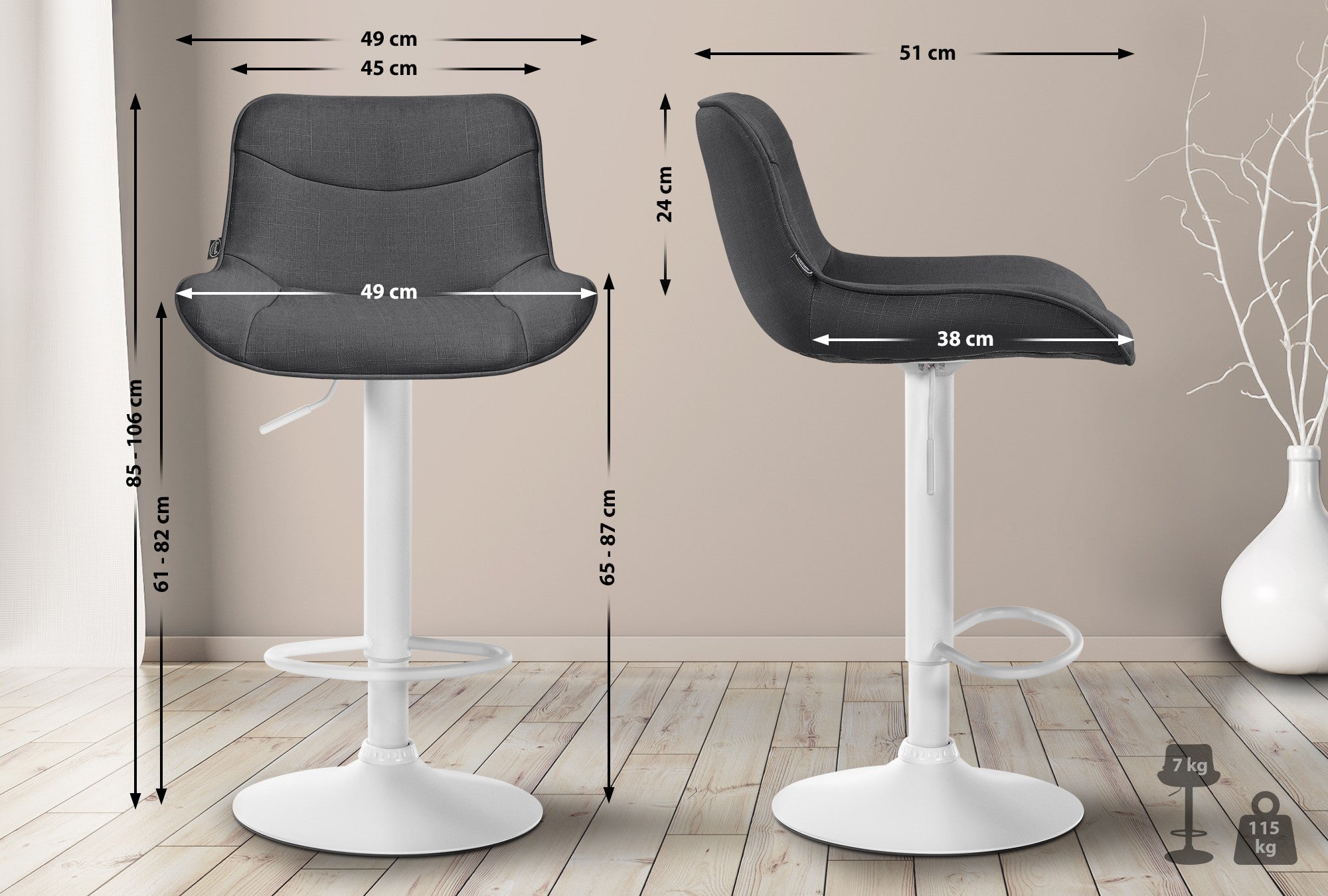 Le tabouret de bar en tissu allie fonctionnalité et design moderne. Réglable en hauteur, il offre une assise rembourrée et une forme ergonomique pour un confort optimal. Pivotant à 360° et réglable en hauteur en continu, il offre des positions d'assise flexibles.