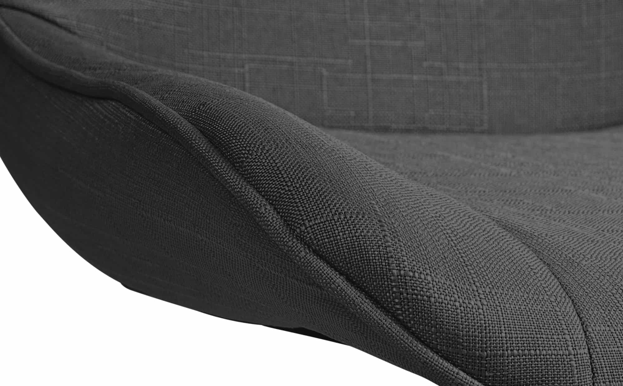 La structure en métal et le piètement en trompette garantissent stabilité et durabilité. Le repose-pieds intégré s'ajuste à la hauteur de l'assise et offre un soutien supplémentaire. Le revêtement en tissu est résistant et offre une assise confortable. Les patins de protection protègent le sol des rayures.