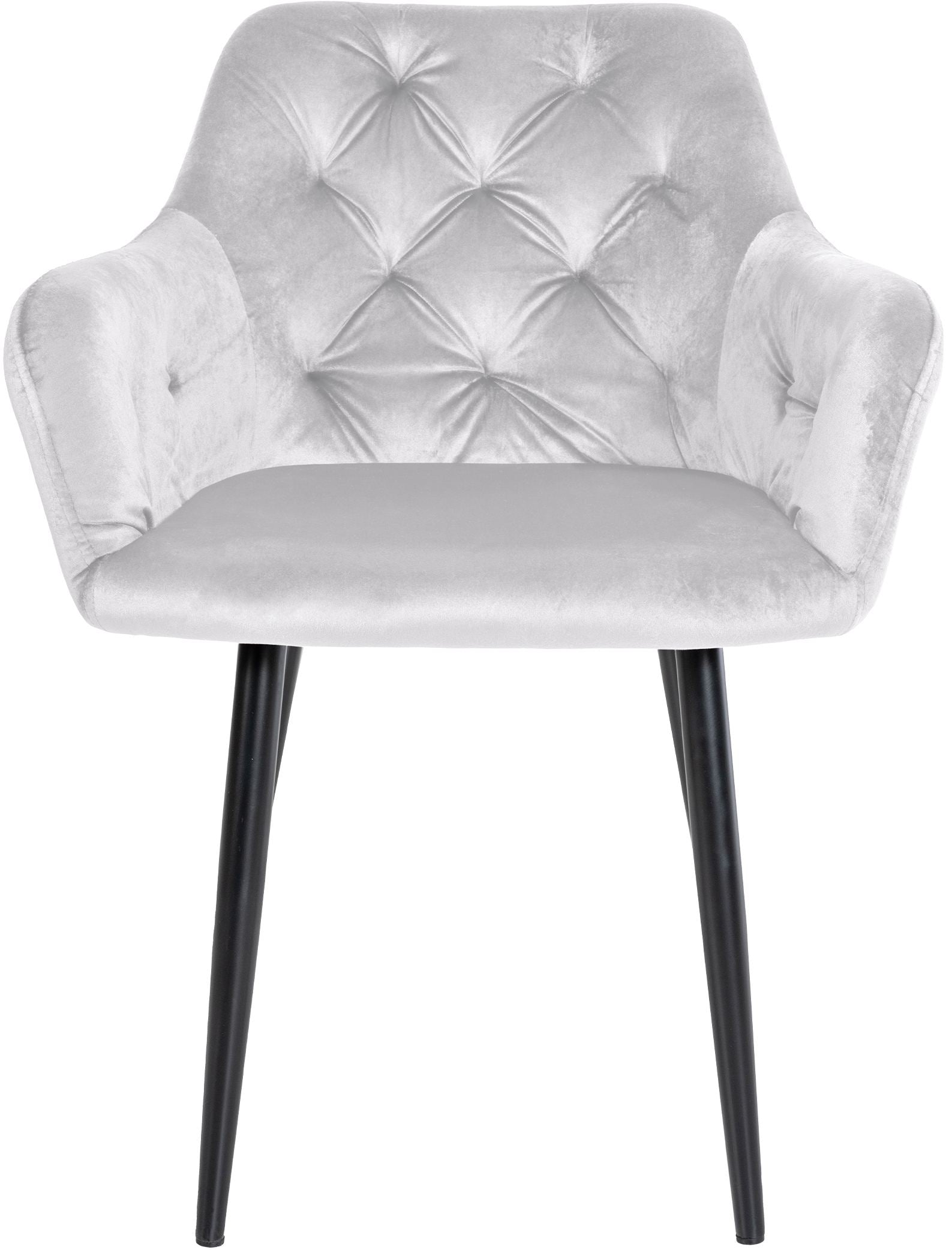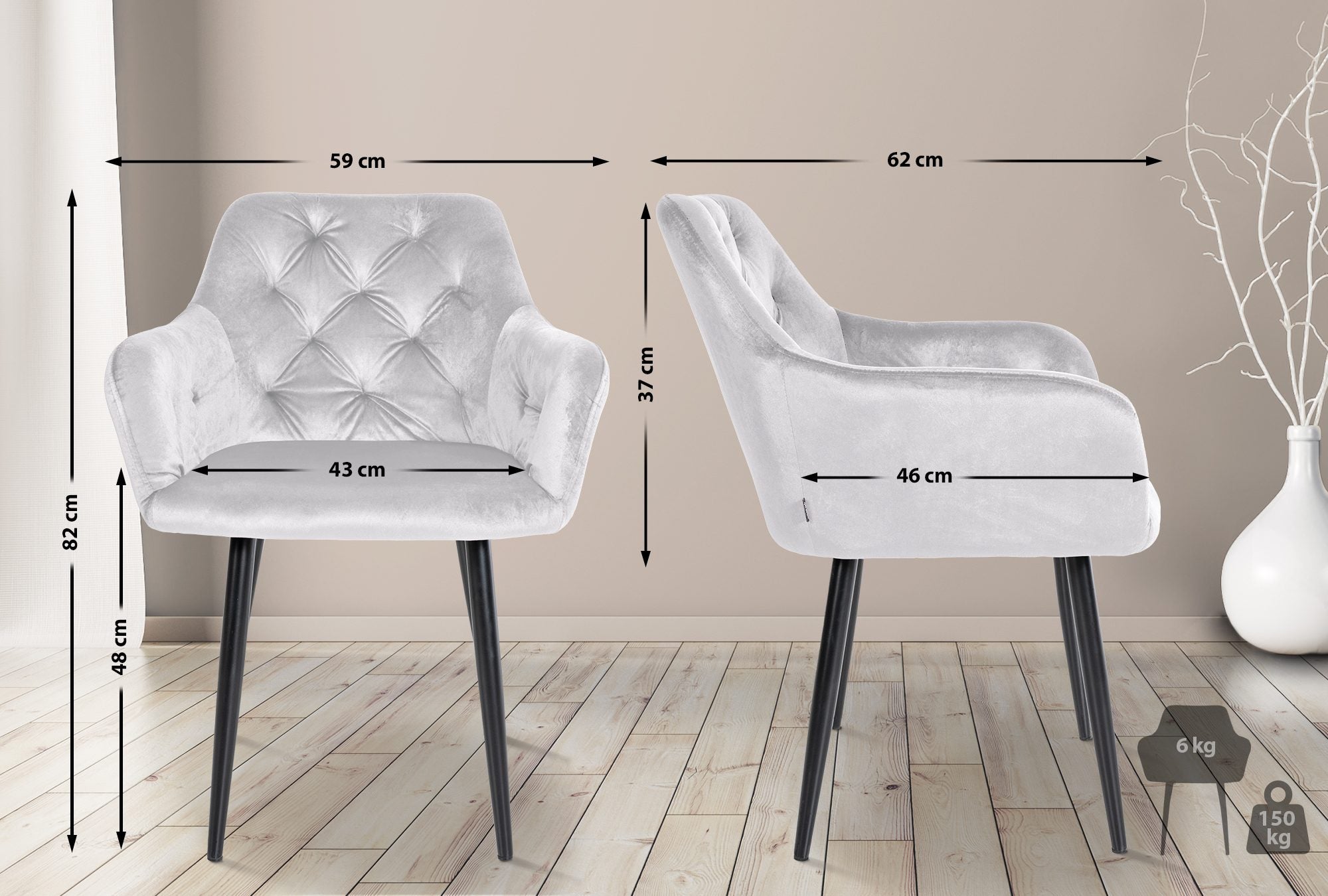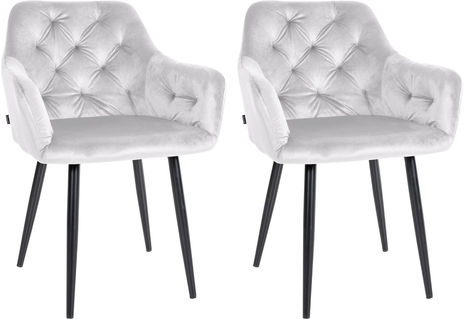 Set de 2 chaises de salle à manger avec coutures décoratives en velours gris et pieds en métal noir 10_0001630