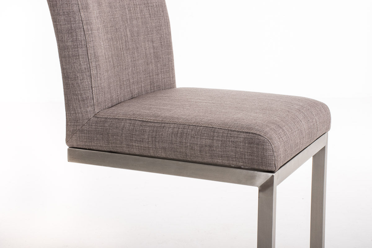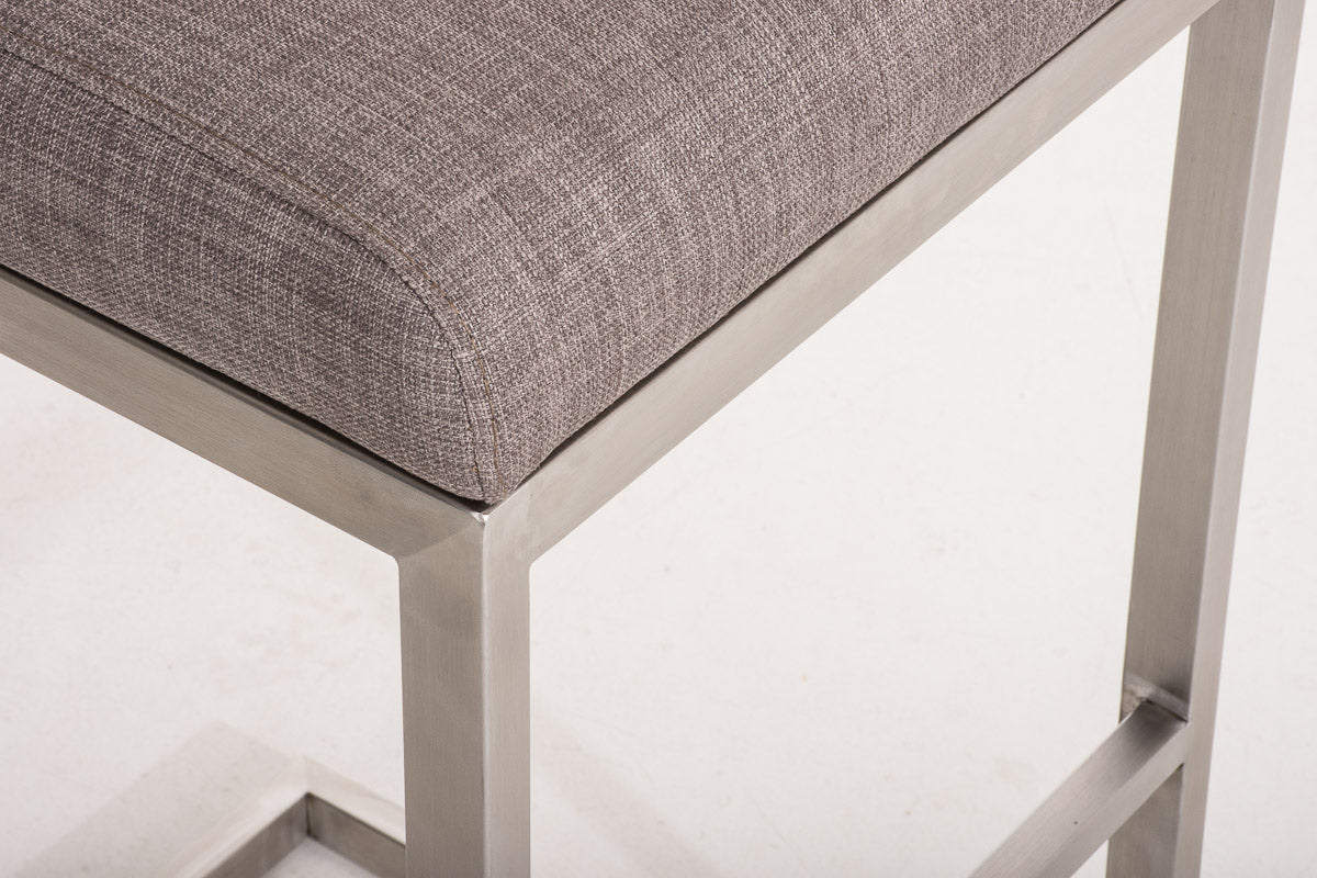 Tabouret de bar chaise haute contemporaine avec assise rembourrée tissu gris et piètement en acier inoxydable 10_0001191
