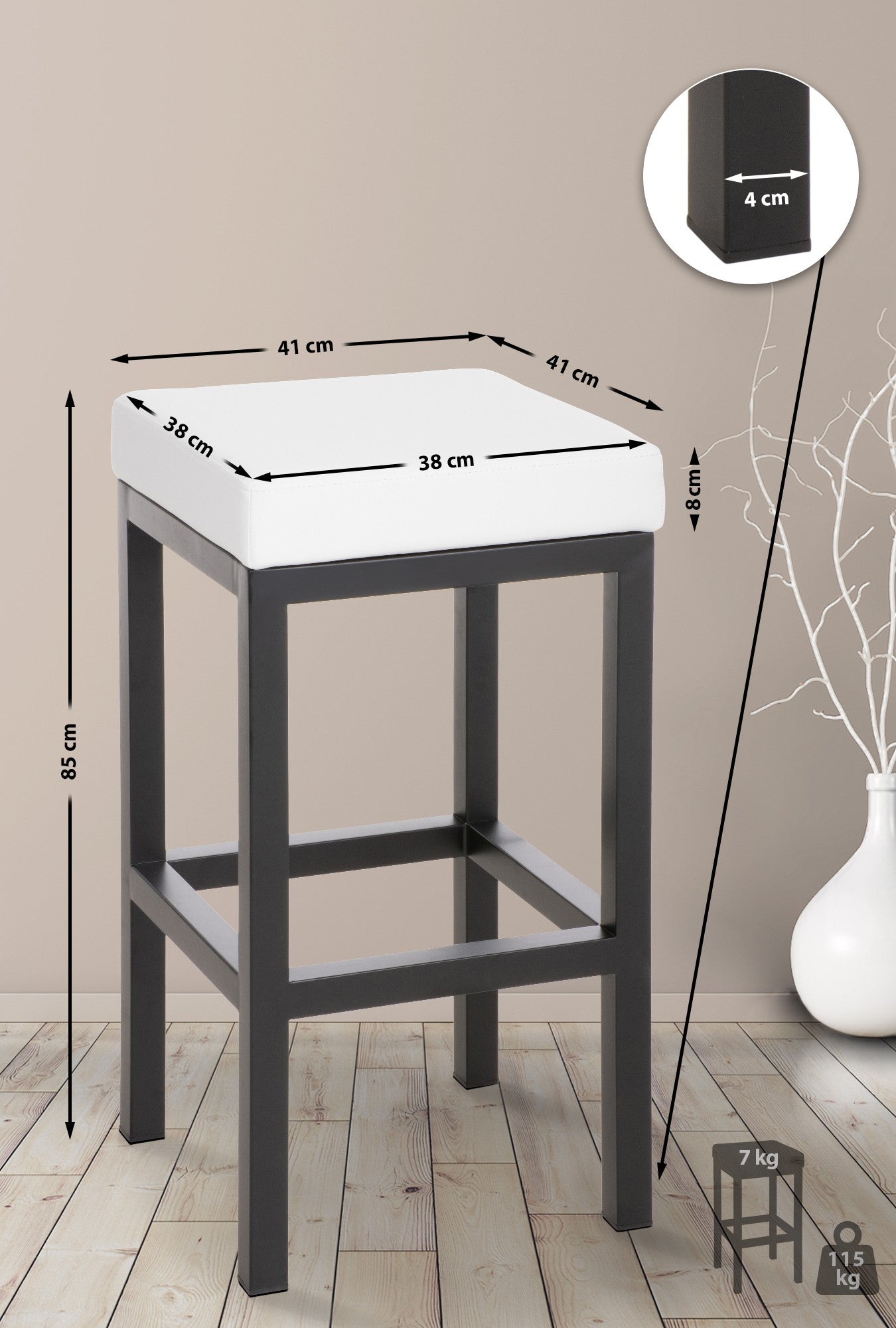 Tabouret de bar x1 avec repose-pieds design simple hauteur d'assise 85 cm en PVC blanc et support en métal noir 10_0005412