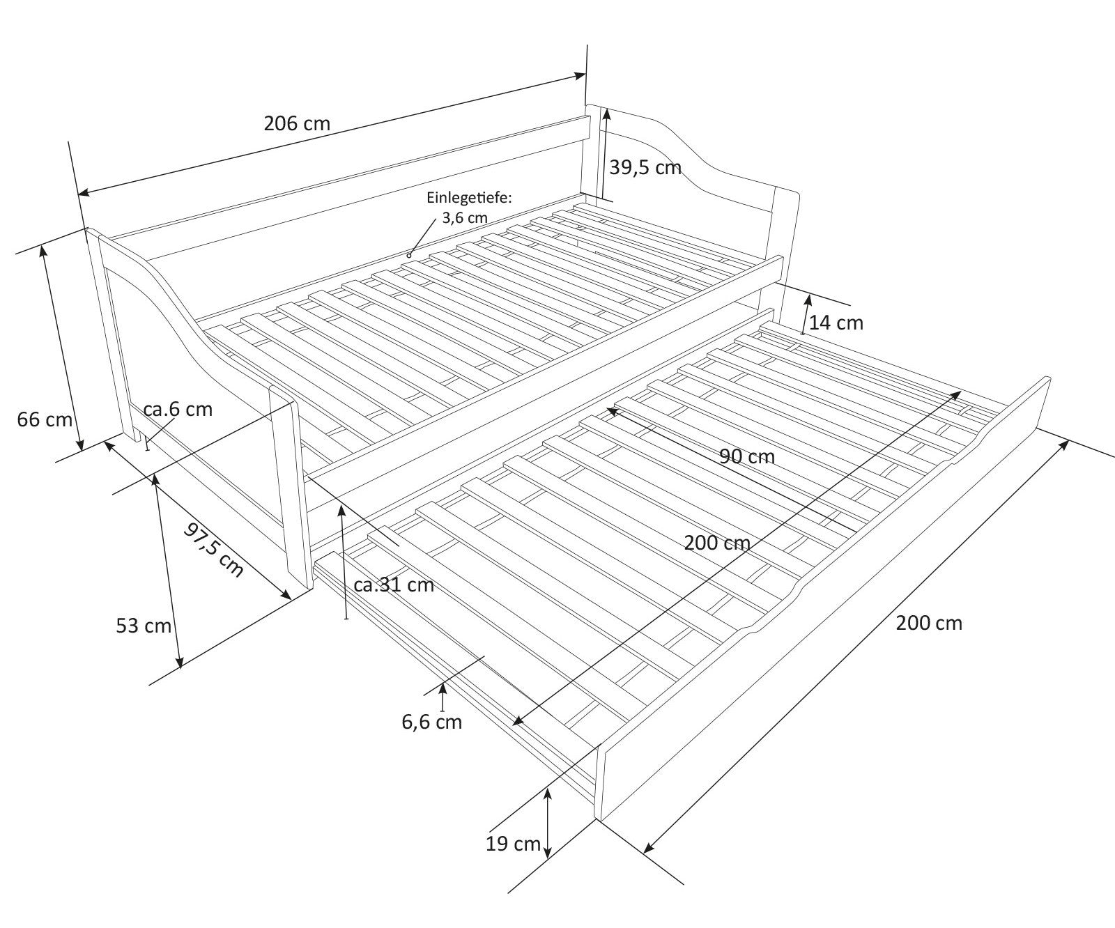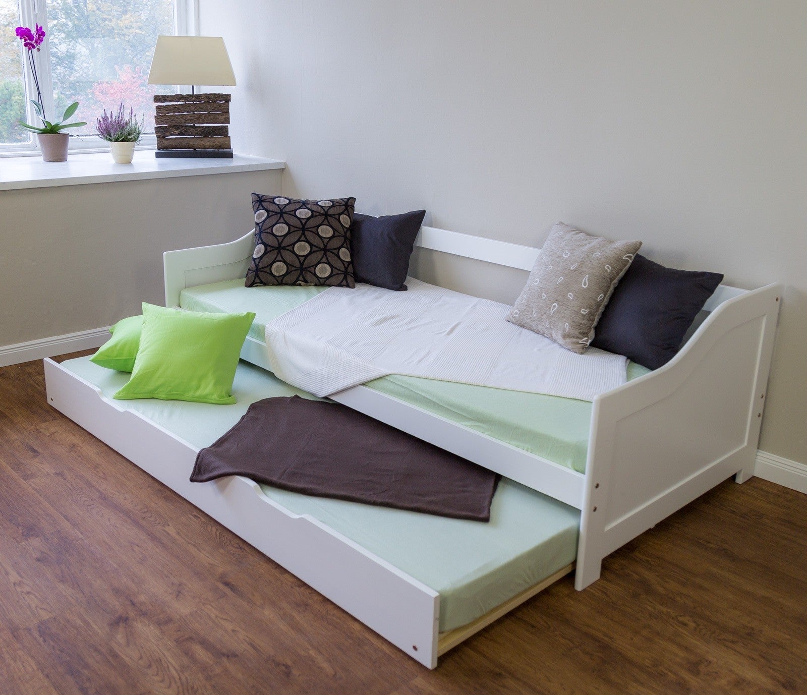 Lit gigogne avec sommier à lattes banquette tiroir 90x200cm blanc LIT06074