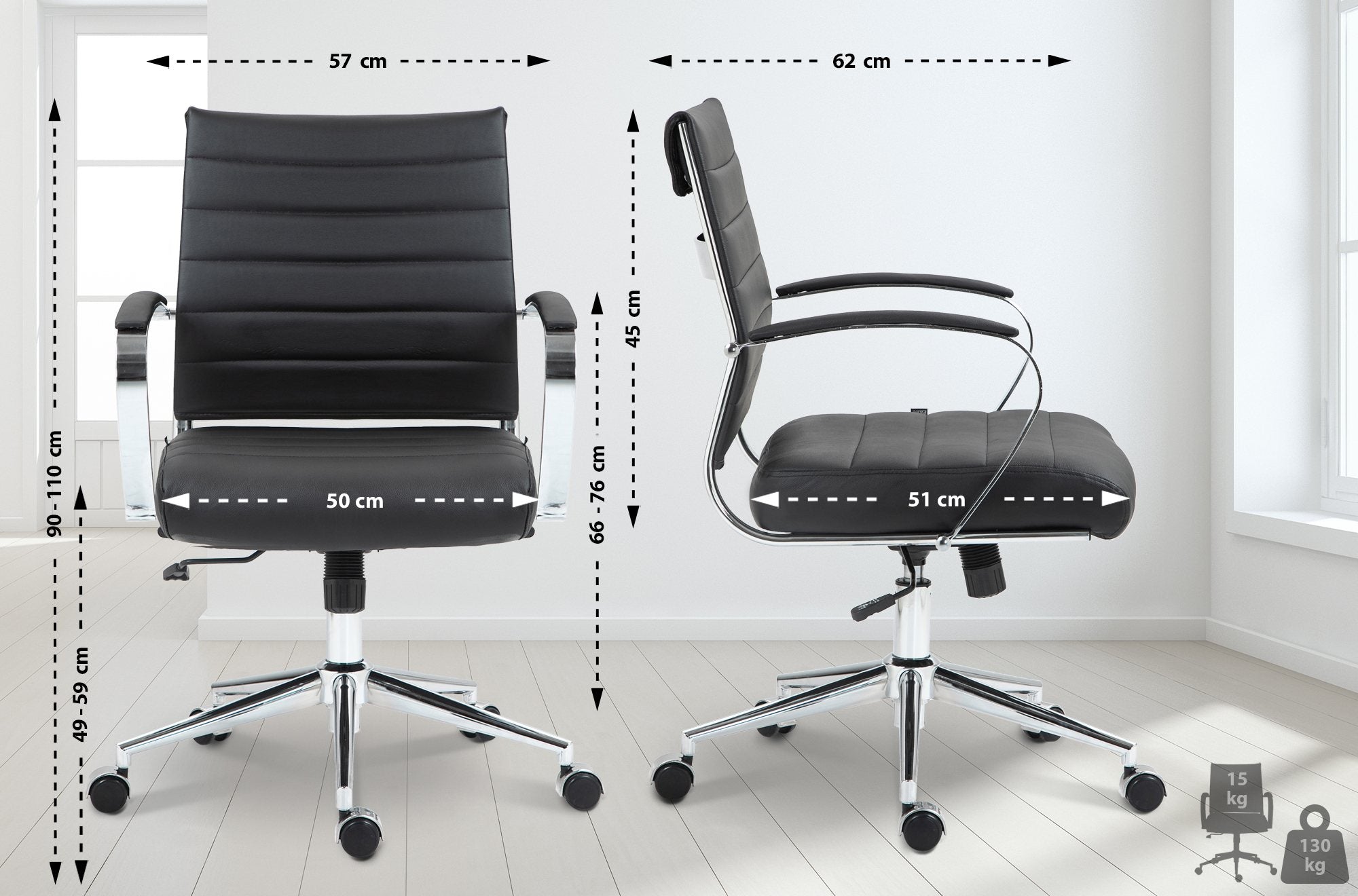 Hauteur des accoudoirs (à partir du sol): 66 - 76 cm