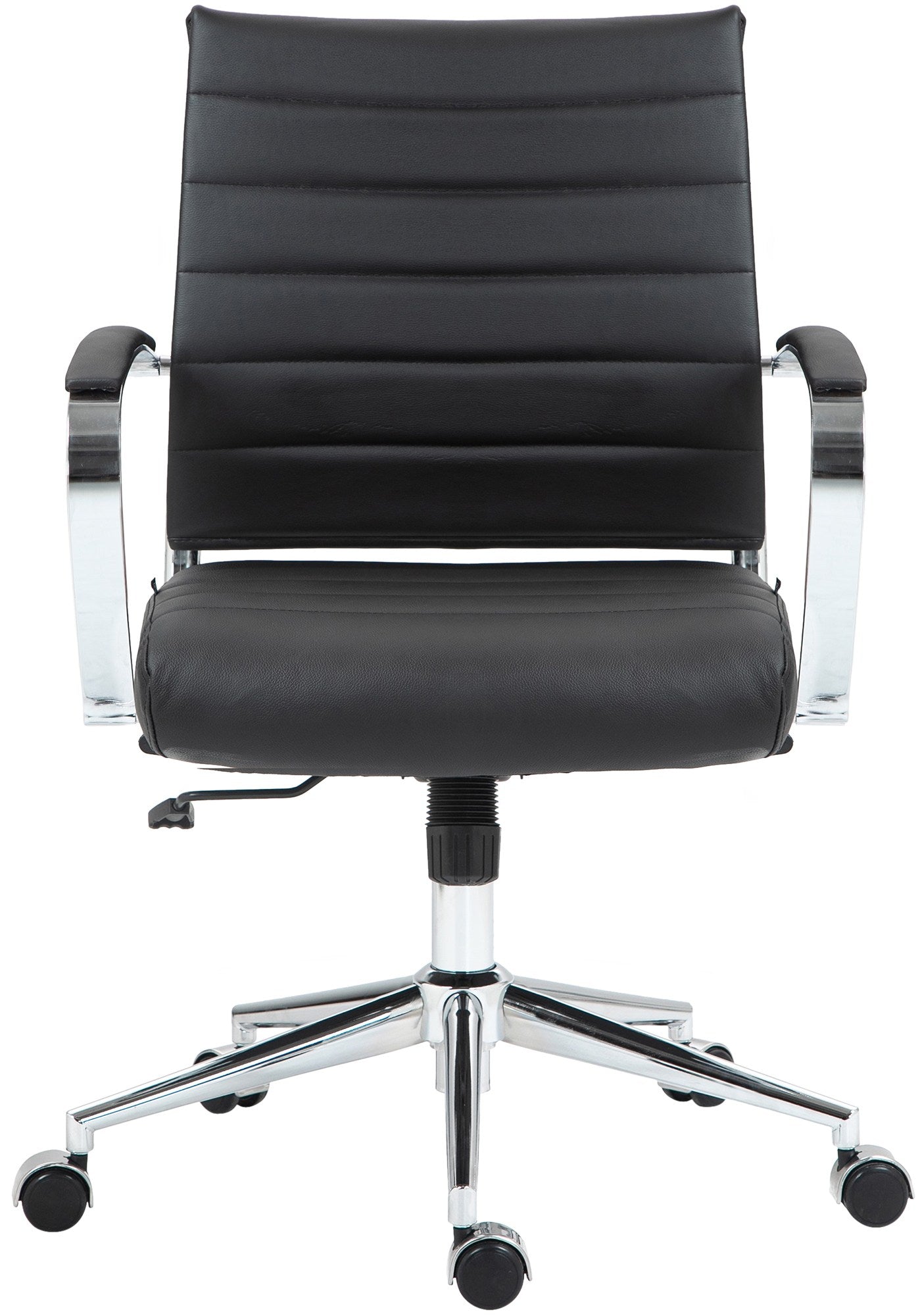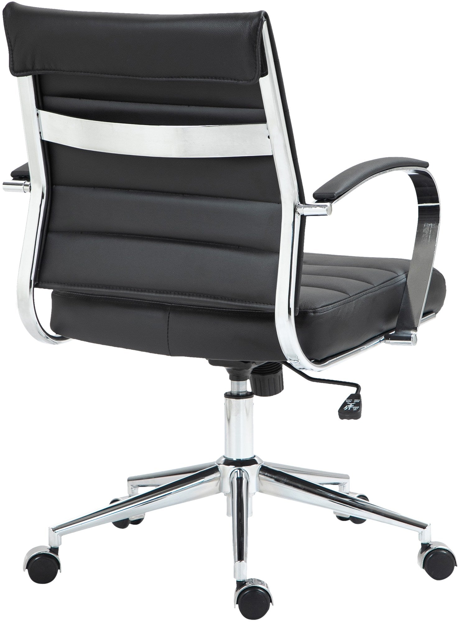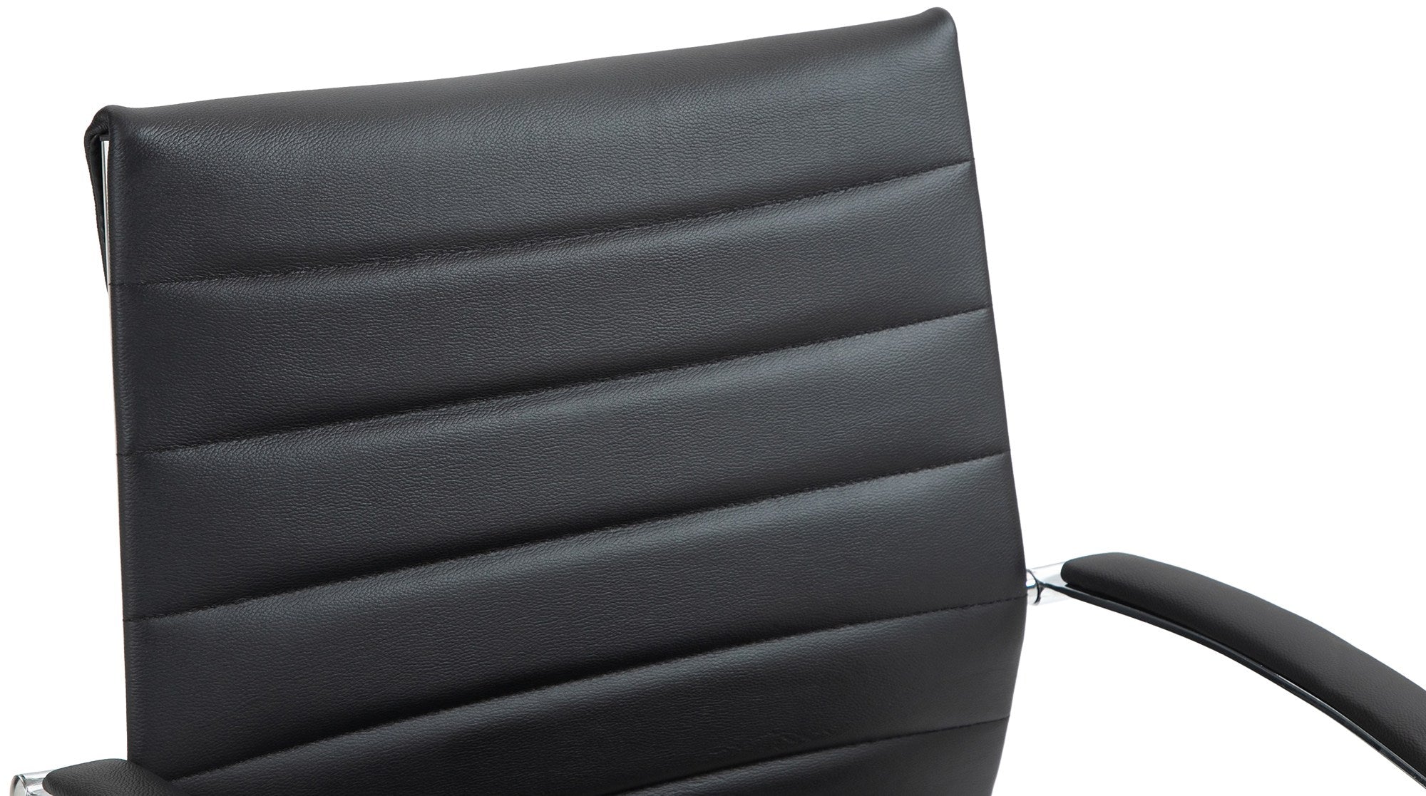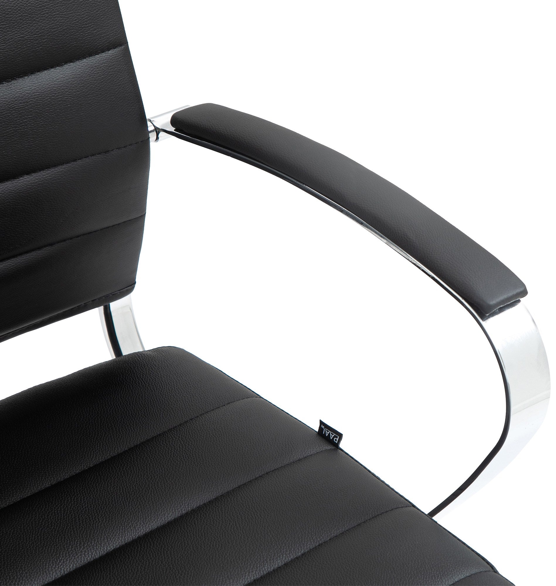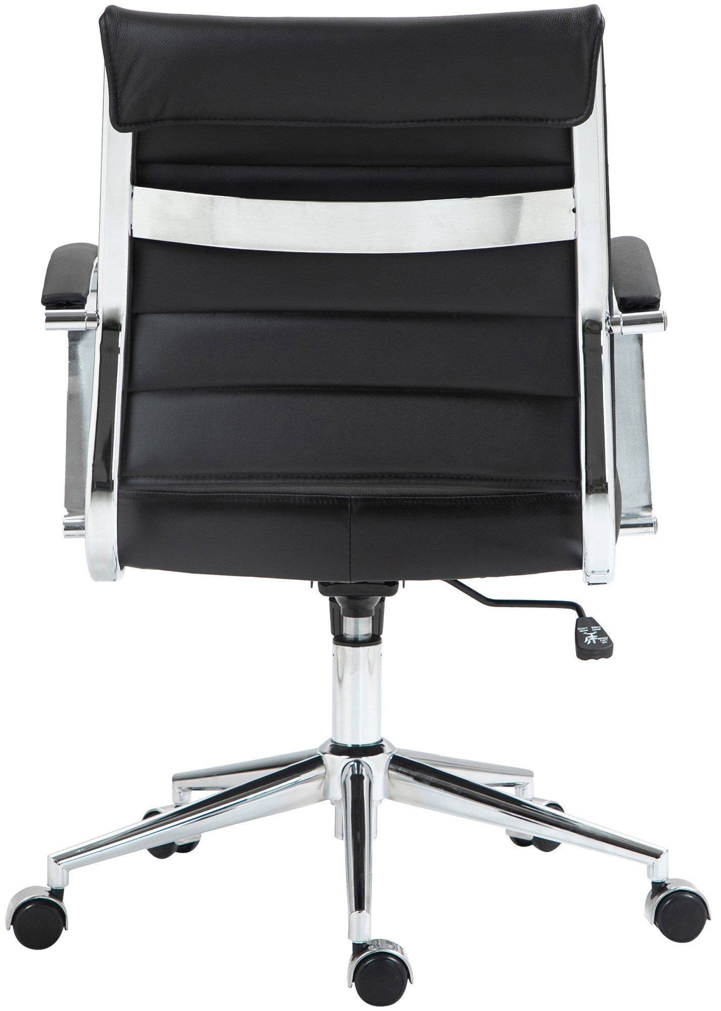Chaise de bureau design ergonomique en cuir véritable noir et métal chromé 10_0002561