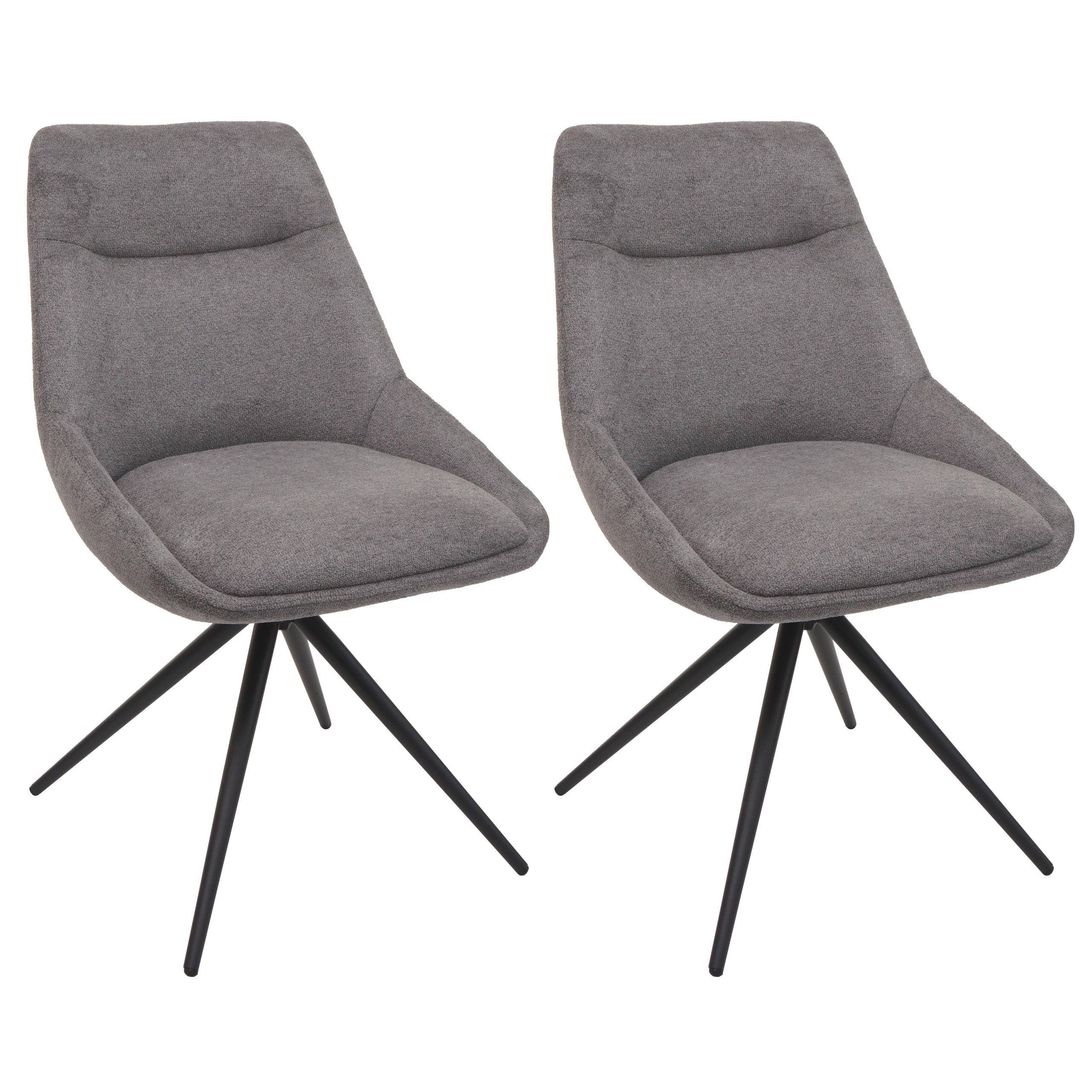 Lot de 2 chaises de salle à manger avec coutures décoratives assise pivotante position cadre trépied en métal assise en tissu gris 04_0007388