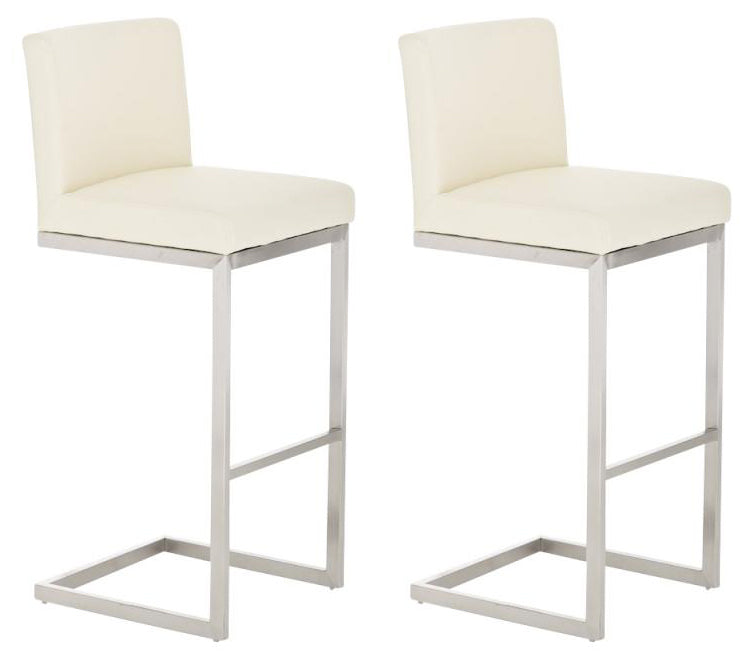 Lot de 2 tabourets de bar design moderne support en acier inoxydable assise en PVC crème 10_0004386