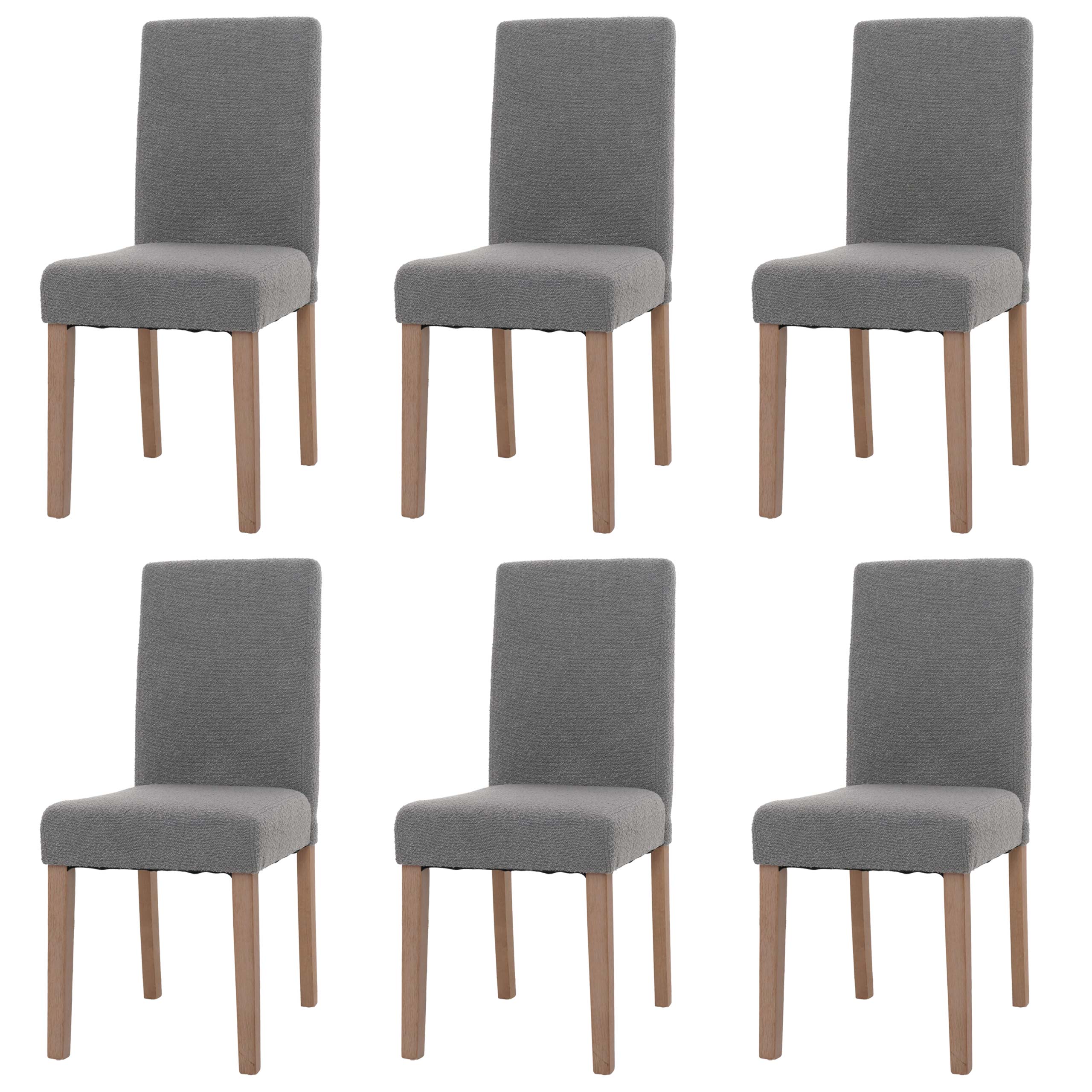 Lot de 6 chaises de salle à manger dossier haut en tissu bouclé gris pieds en bois clairs 04_0007634