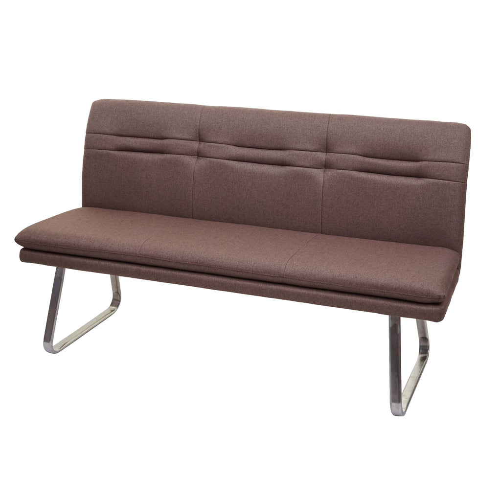 Banc canapé de salle à manger banquette rembourrée avec dossier en tissu marron et acier inoxydable brossé longueur 160 cm 04_0005851