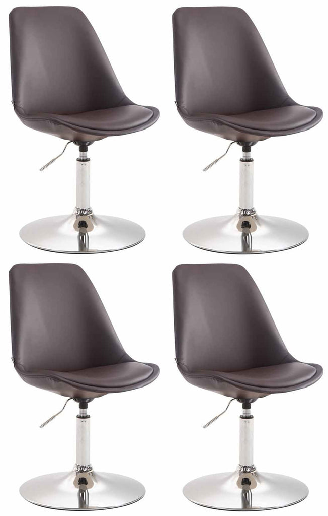Lot de 4 chaises de salle à manger pivotante hauteur réglable en plastique marron et pied trompette métal aspect chromé 10_0001812