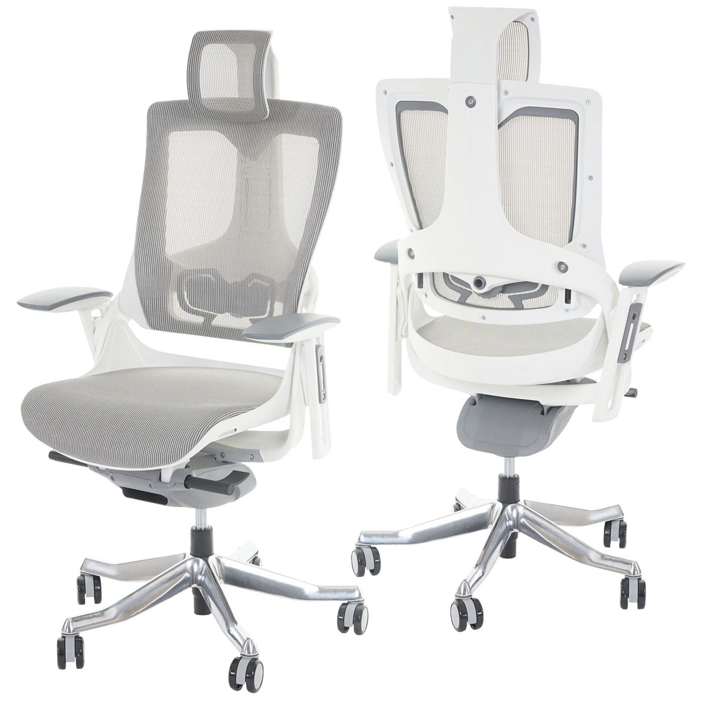Fauteuil de bureau ergonomique soutien lombaire siège pivotant et réglable revêtement en maille blanc-gris 04_0006235