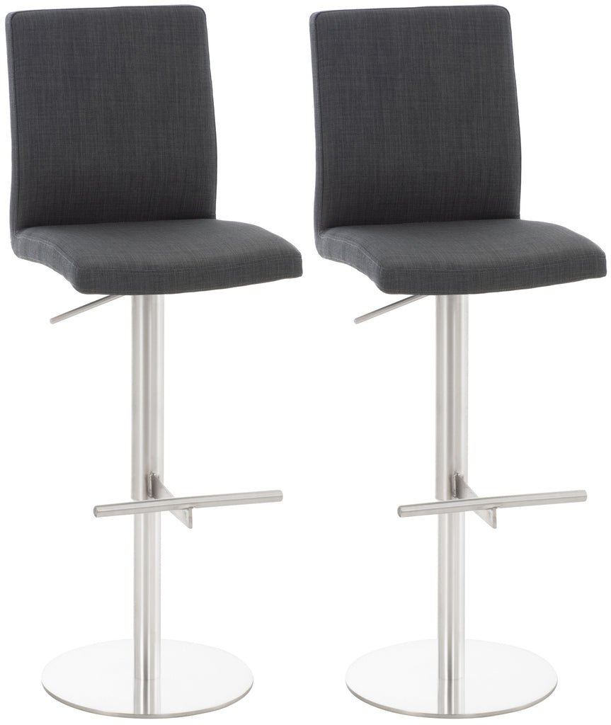 Lot de 2 tabourets de bar avec repose-pieds et dossier assise en tissu gris foncé cadre acier inoxydable 10_0006582
