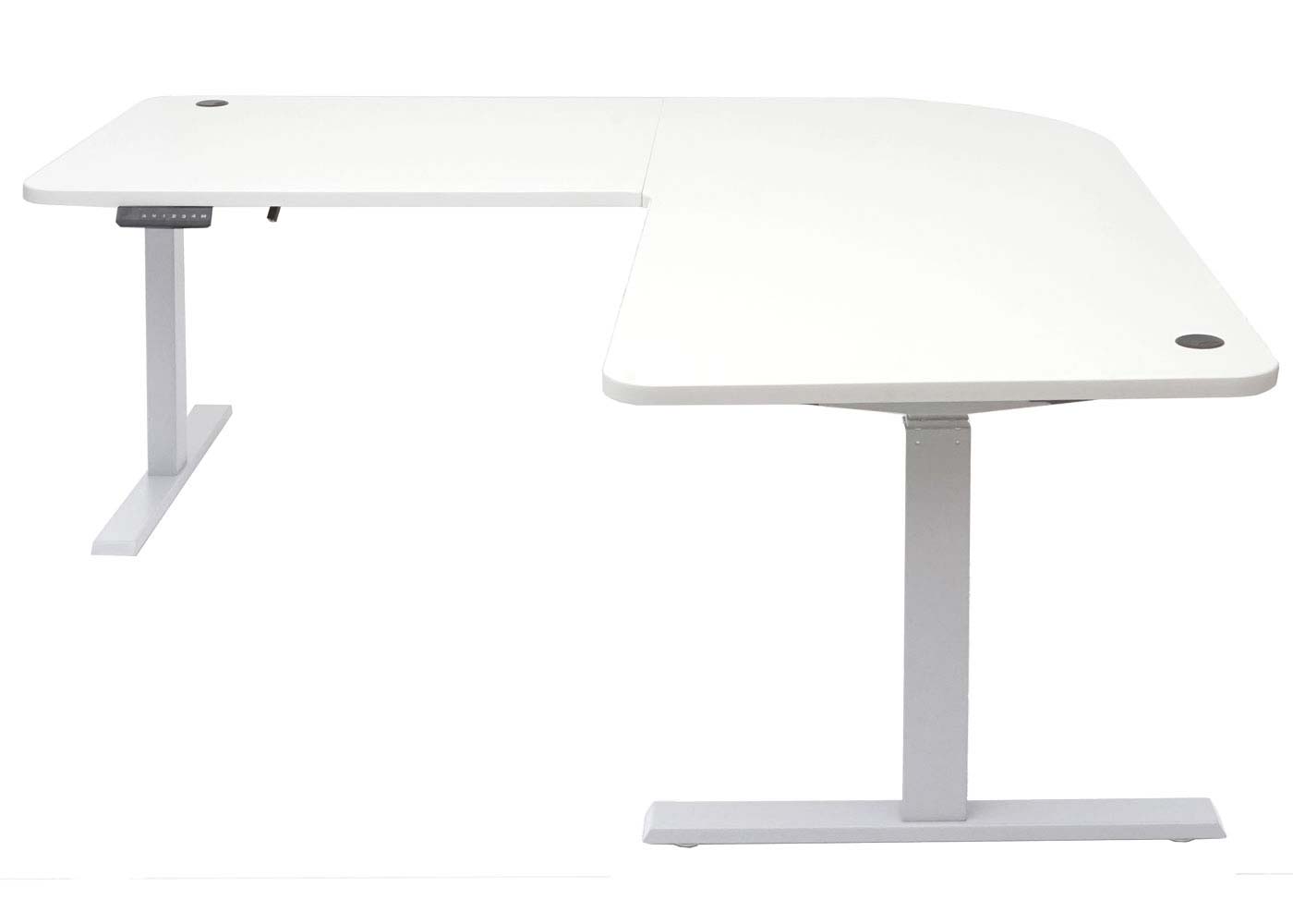 Bureau d'angle table d'ordinateur réglable en hauteur électriquement 178 x 178 cm HDF couleur blanc pieds acier gris 04_0006022