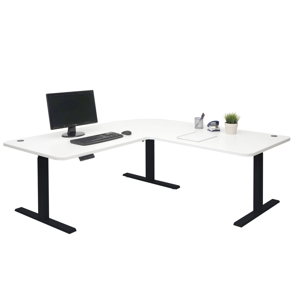 Bureau d'angle table d'ordinateur réglable en hauteur électriquement 178 x 178 cm HDF blanc noir 04_0006024