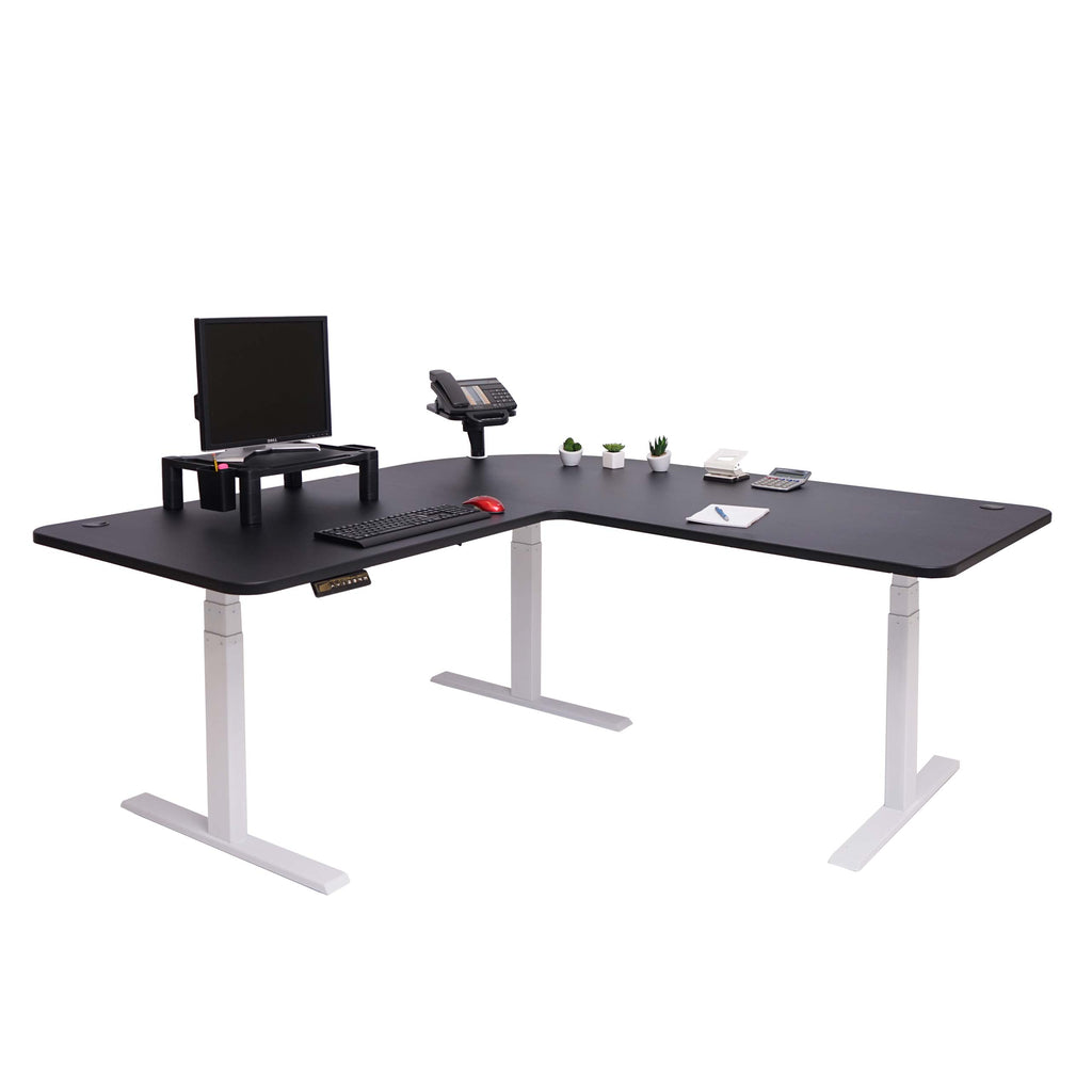 Bureau d'angle table d'ordinateur réglable en hauteur électriquement 178x178cm 84kg noir, blanc 04_0002500