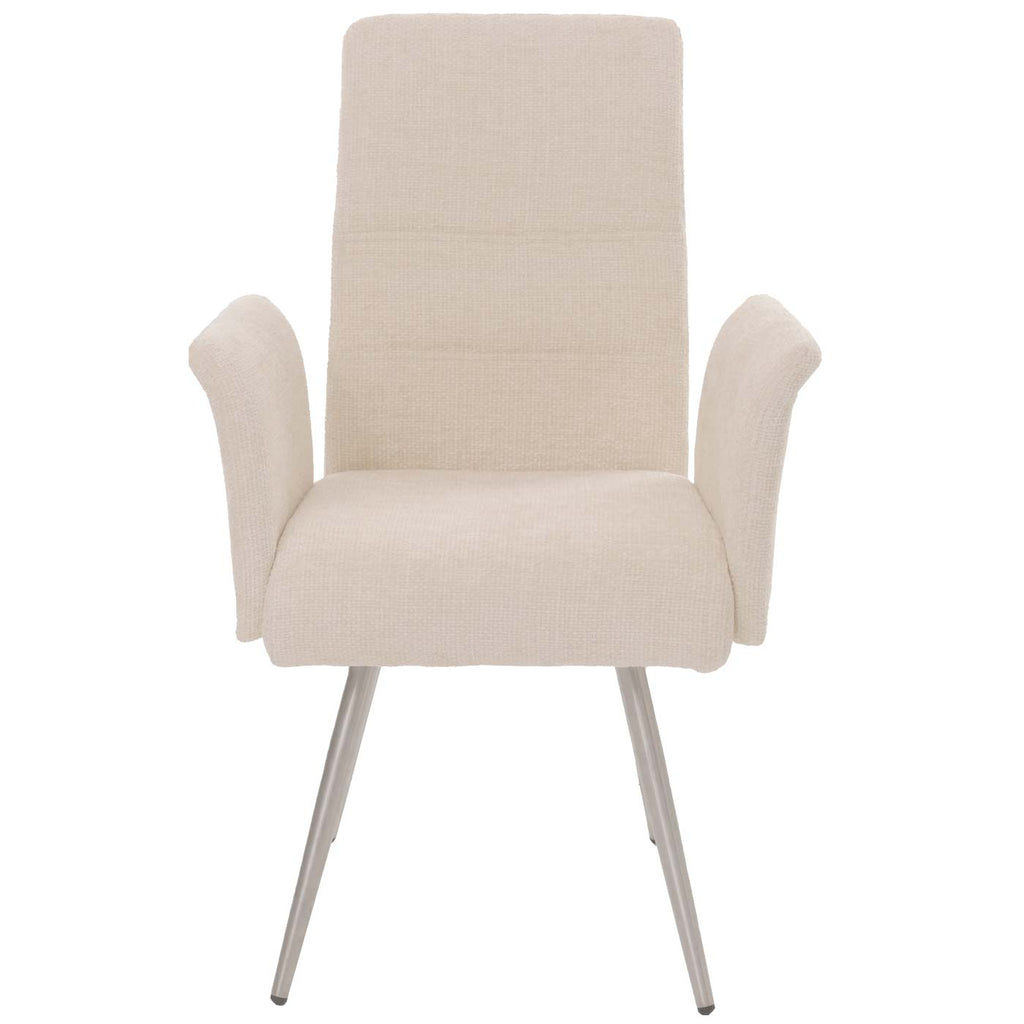 Ensemble de salle à manger composé de 2 chaises avec accoudoirs + banc 160 cm tissu chenille crème 04_0006718