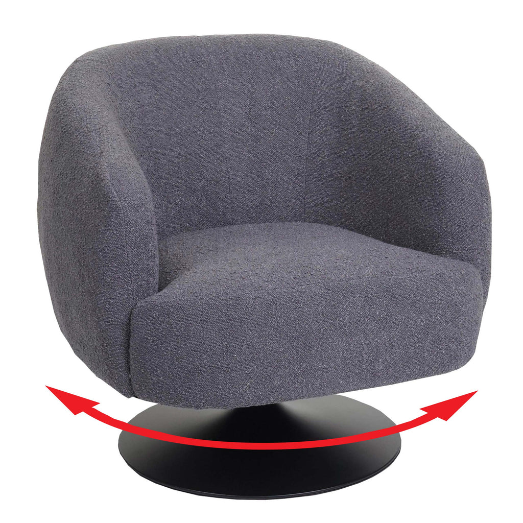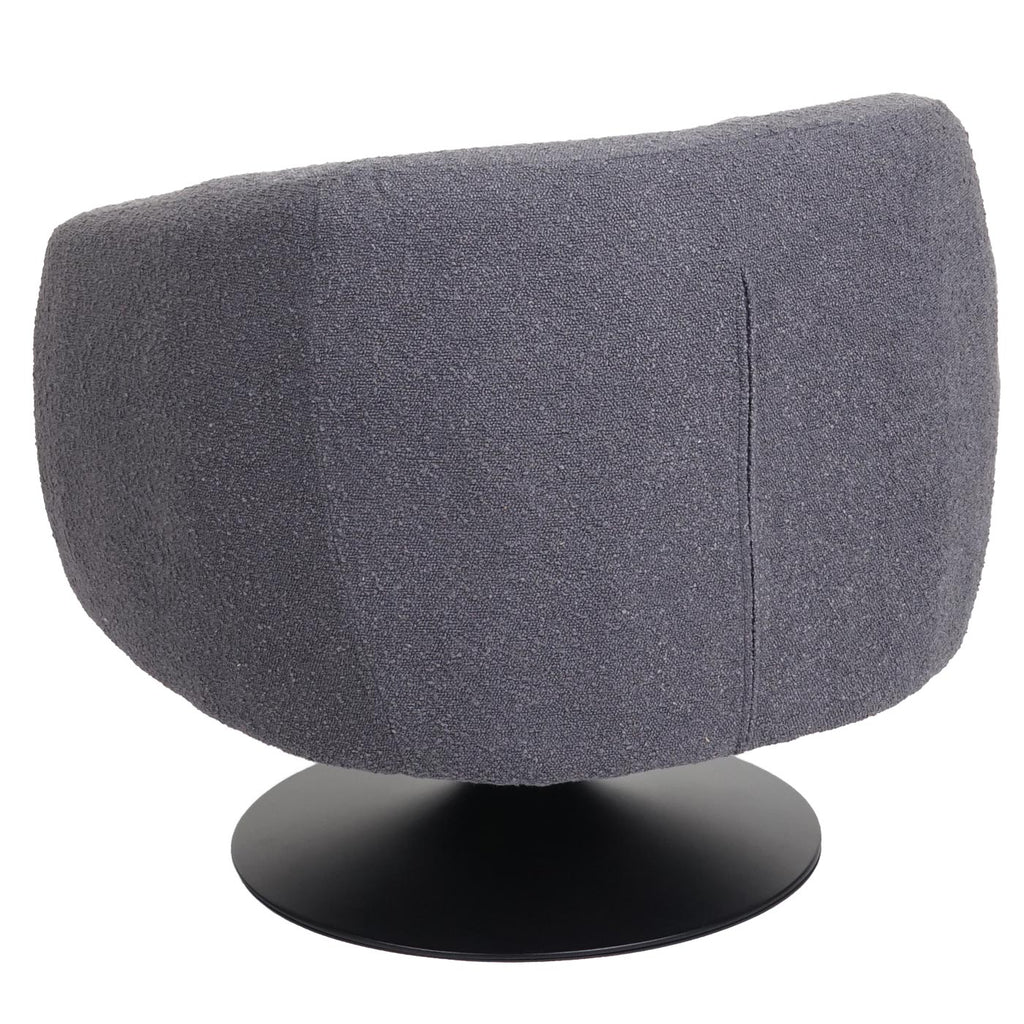 Fauteuil lounge cocktail pivotant coins et bords arrondis en tissu bouclé gris foncé et métal 04_0006852